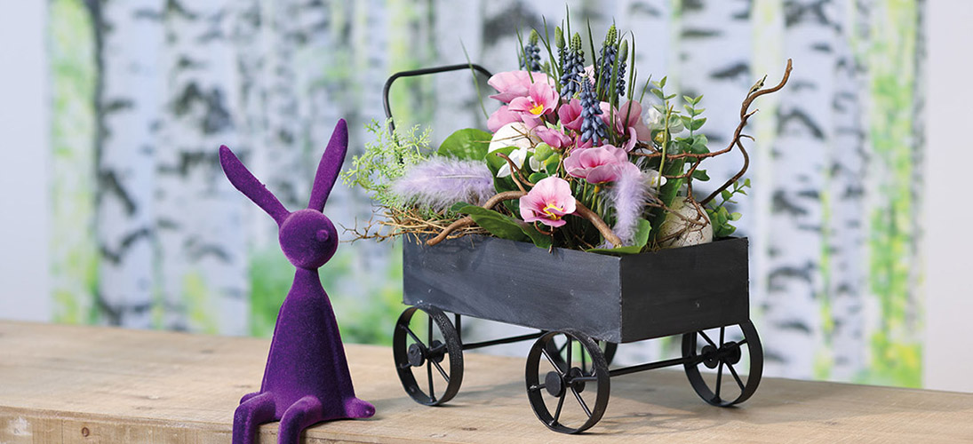 Opdag mere...Frisk forårspåskepynt - kaniner og høns, kyllinger og mange andre dekorative figurer til foråret