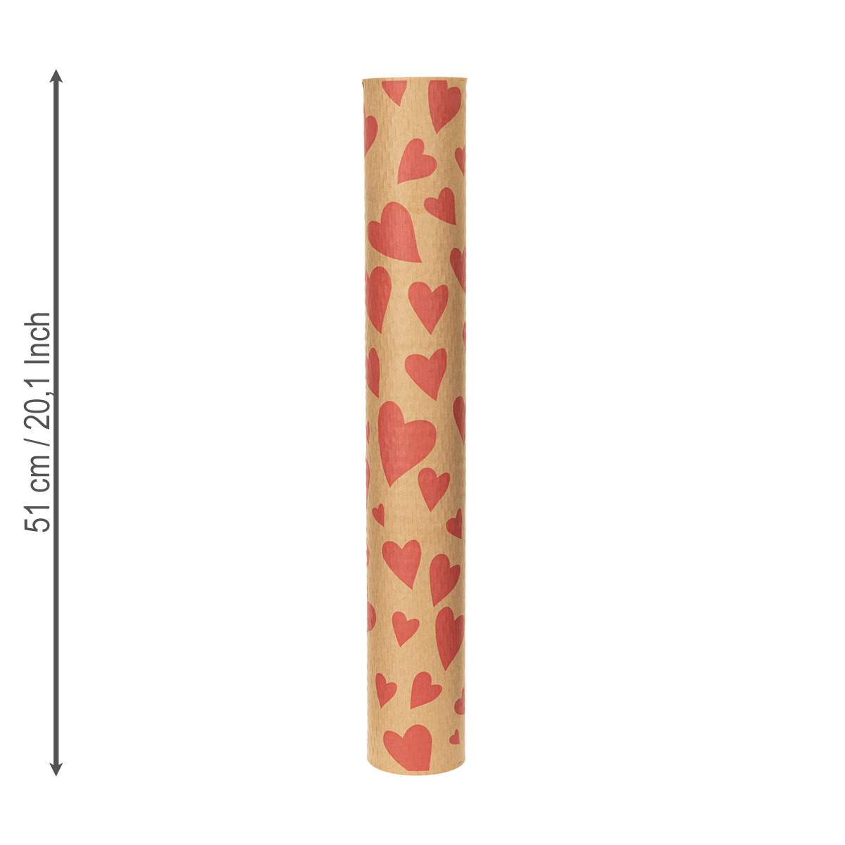 Vores bæredygtige gavepapir i varm rød og naturlig brun er meget mere end bare simpel emballage. Med en længde på 25 meter og en bredde på 51 centimeter er det nok til at pakke gaver i alle størrelser ind. De charmerende hjerter kombineret med den naturlige papirfarve tilføjer et strejf af romantik og stil til enhver gave. Uanset om du leder efter kreativ gaveindpakning til blomsterarrangementer, gør-det-selv-projekter eller beskyttende indpakningsmateriale – er dette papir utroligt alsidigt!