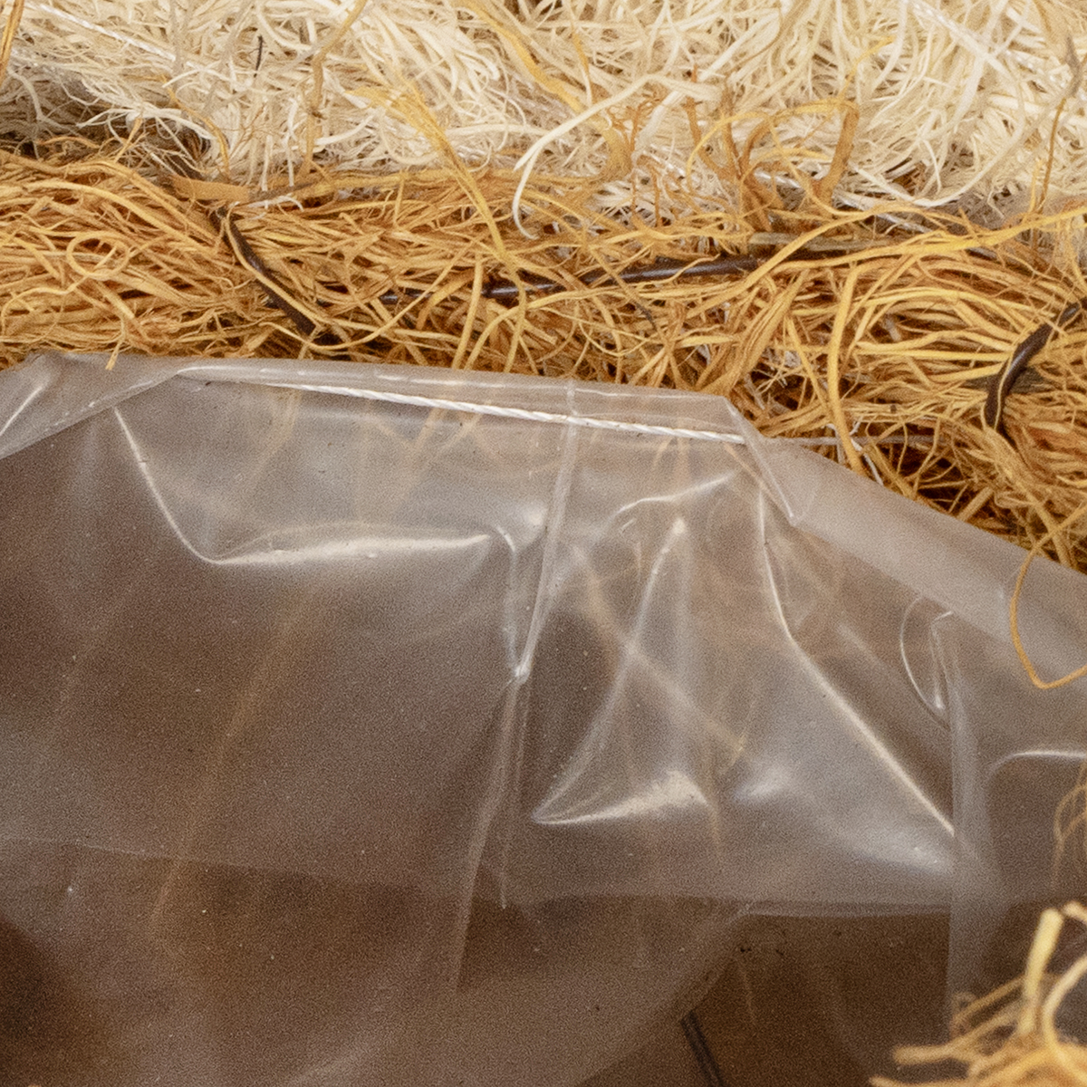 Plastikindsatser eller syntetiske fibre: Genbrug i henhold til lokale regler.