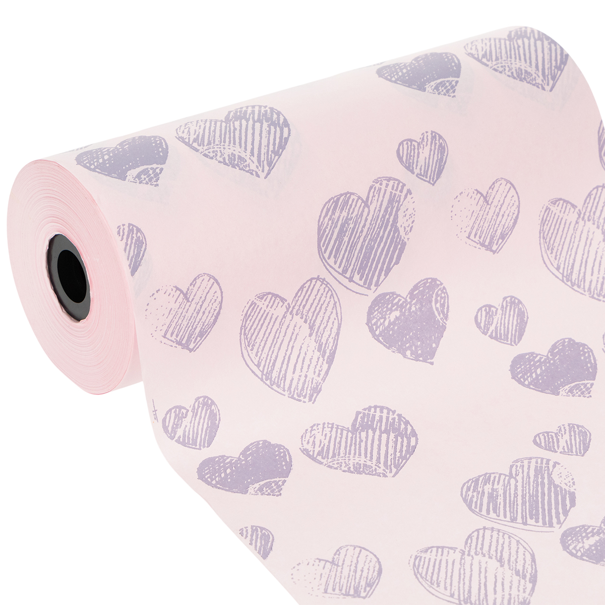 Blomstergavepapir med hjertemotiver til dekorative blomsterkreationer, 25 cm x 25 m