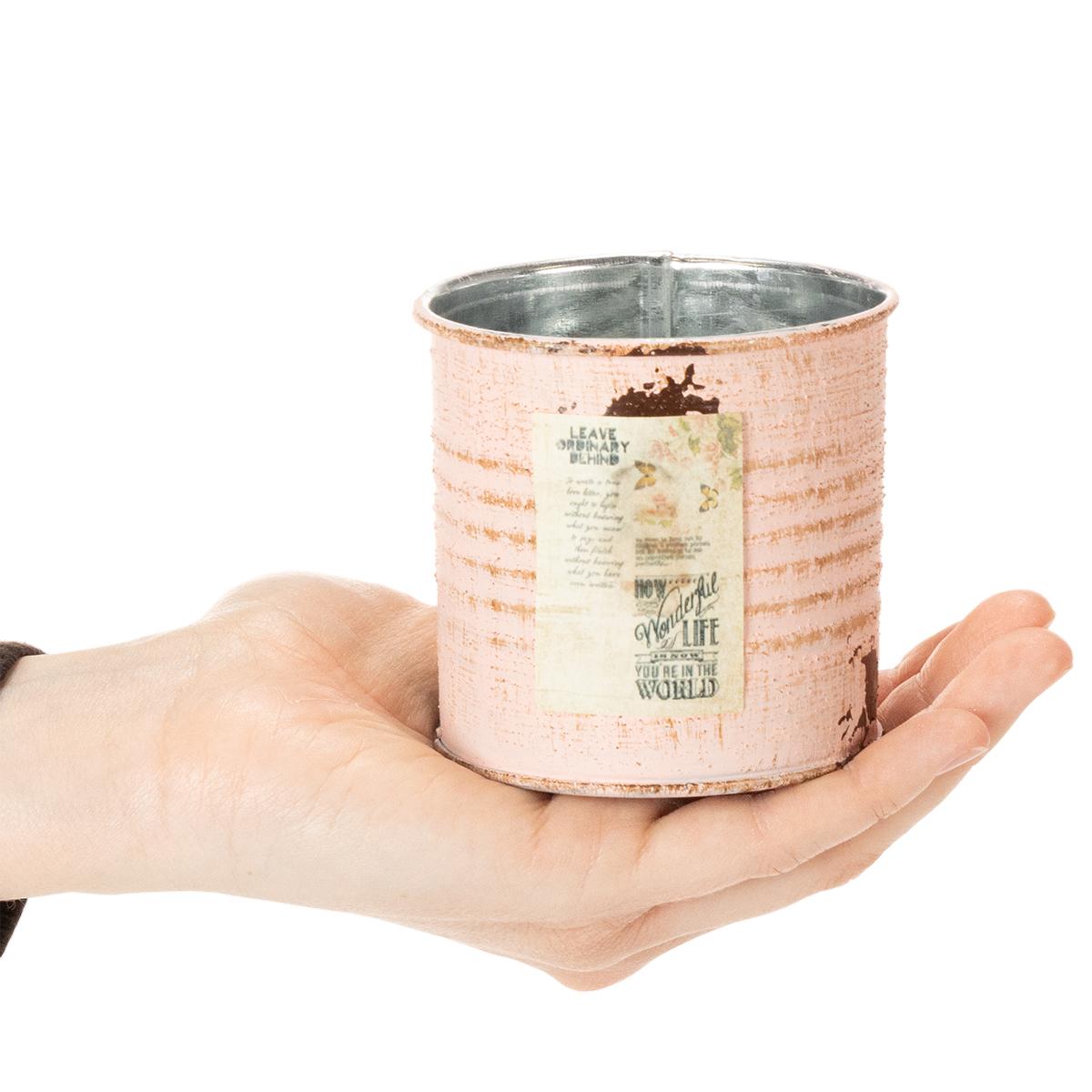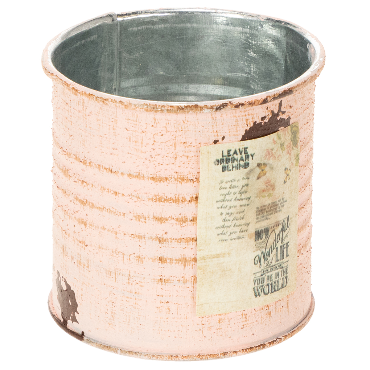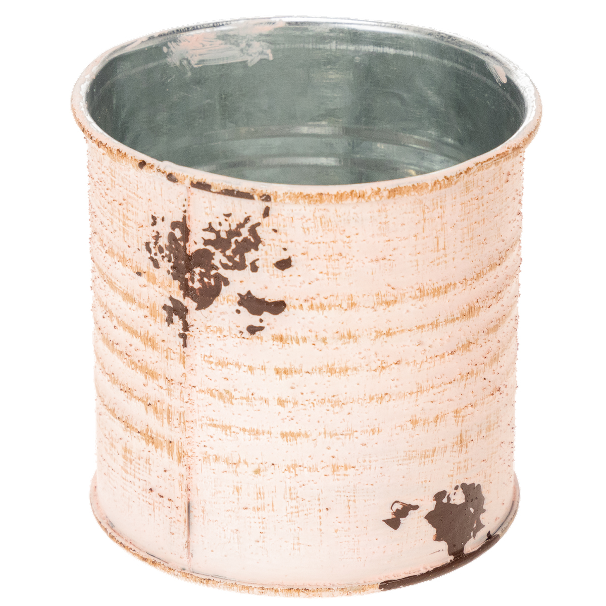 Som urtepotte er pynteboksen i den laksefarvede udgave med garanti et blikfang! Den lille dåse af metal er sprayet sølv på indersiden og tofarvet på ydersiden med vintage maling. Små detaljer som en nostalgisk etiket og malede rustpletter gør metalgryden til en gammeldags dekorativ genstand.
