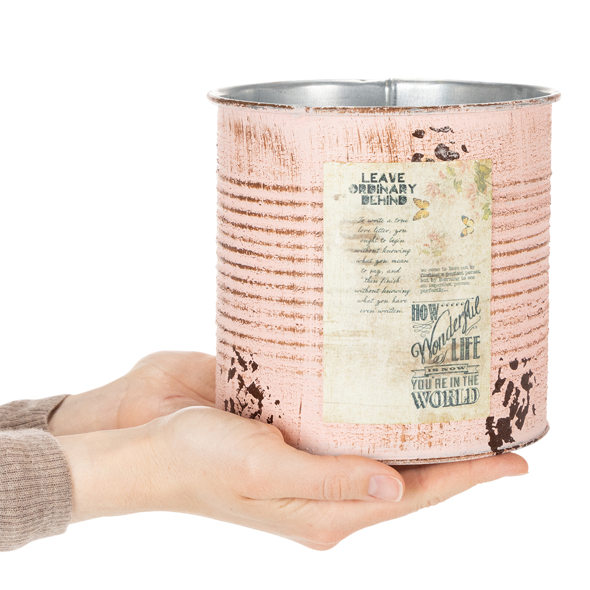 Blomsterpotte dekorativ dåse laksefarvet metalplanter Ø15,5 cm H15 cm