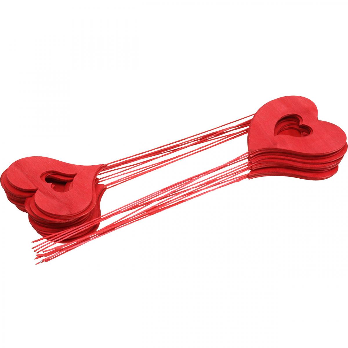 Blomsterprophjerte, trædekoration til klæbning, Valentinsdag, dekorativt stik rød, Mors Dag L31-33cm 24 stk.