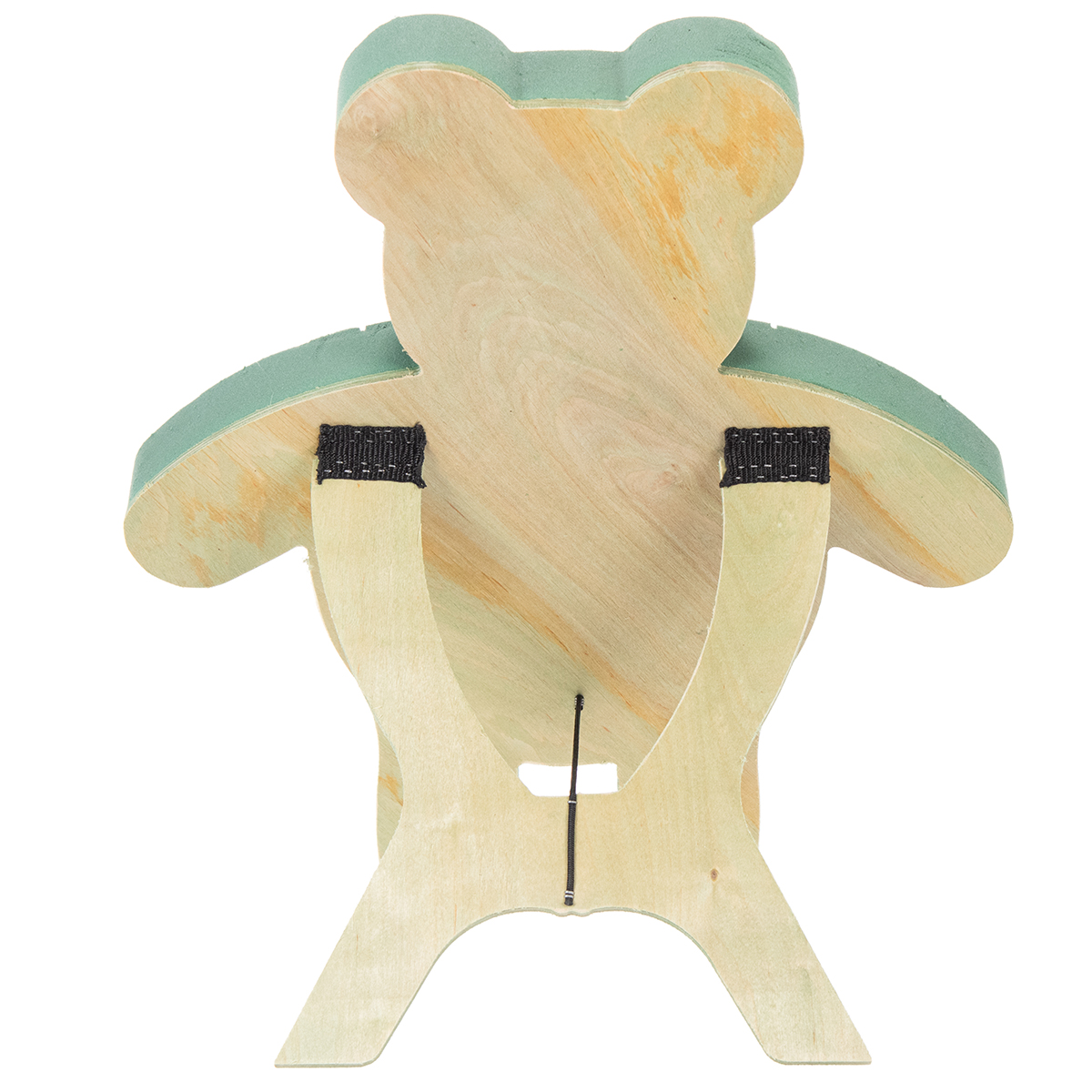 Plug-in skumfiguren Teddy er en original og smuk blomstermåtte. Bjørnefiguren er lavet af grøn kitt og er fastgjort til en træbase med et stativ. Stativet kan let åbnes og lukkes for transport. Derudover har plug-in-materialet skærelinier og er opdelt i segmenter som mund, næse, ører og tøj. De afskårne linjer beskytter mod dehydrering, fordi vandet samles foran udskæringerne.