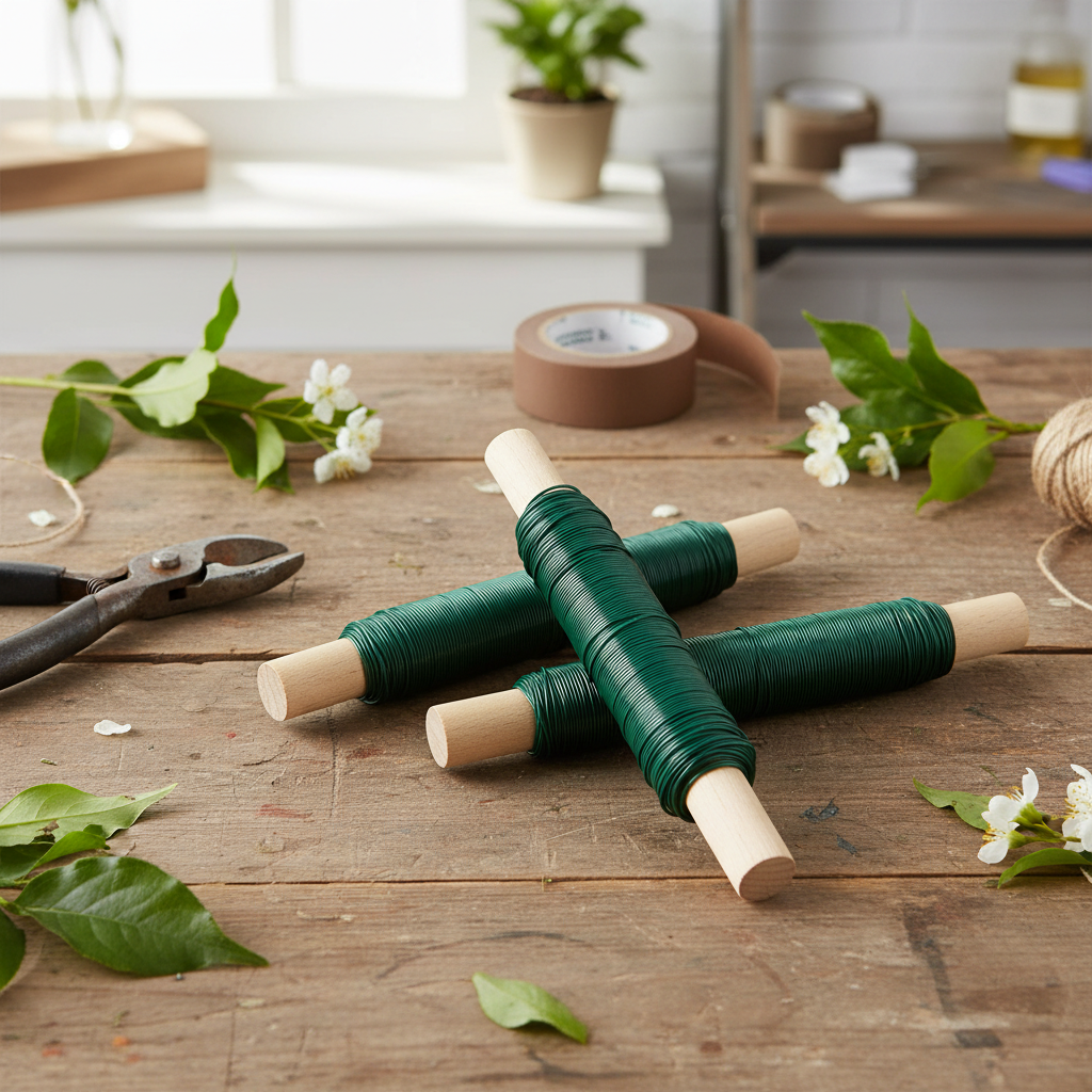 Blomstertrådsindpakning med trådbinding, grøn 0,65 mm 100 g 3 stk.