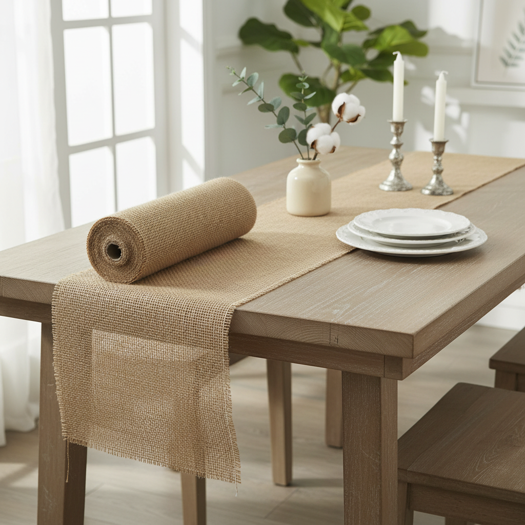 Opmærksomhed fans af landhus stil! Dette naturlige jute-bånd kan bruges vidunderligt til al landlige dekorationer og endda til en bryllupsfest! Juten er ubehandlet og sammensat i et grovmasket mønster. En bomuldstråd blev vævet ind i kanten, så fibrene ikke løsnes. For eksempel skal du placere båndet over et bord ved juletid og derefter placere et rødt dekorativt bånd, et par valnødder, kegler og en stearinlys med et søjlelys på. Dette giver dig et rustikt, elegant touch, der harmoniserer vidunderligt med træmøbler.
