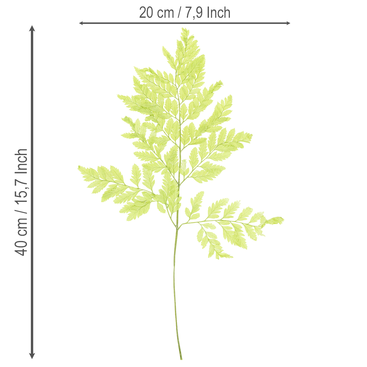 Dette sæt indeholder ti stilke, der hver er 40 centimeter høje. Den delikate tekstur og lysegrønne farve af de tørrede bregner passer perfekt til andre materialer som træ, glas eller keramik. Brug disse planter som langvarige bregnedekorationer til dit hjem for at skabe en naturlig og indbydende atmosfære. Opdag de utallige designmuligheder, og lad din kreativitet få frit løb!