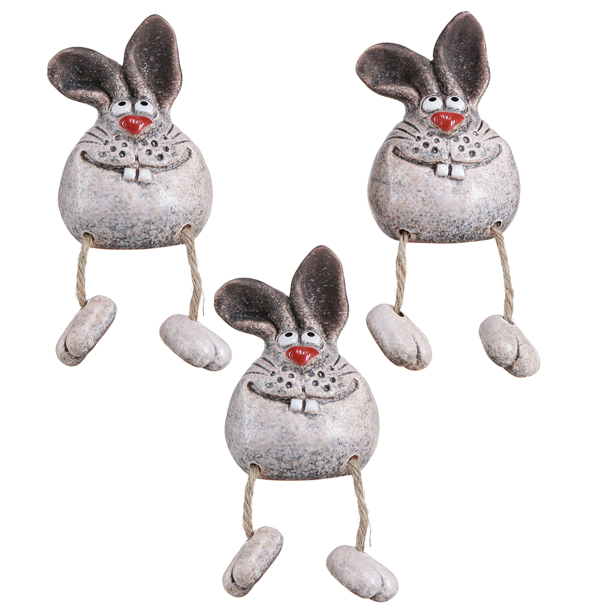 Vores keramiske kaniner som dekorative figurer bringer ikke kun et smil til alle ansigter, men også et strejf af humor og elegance ind i dit hjem. Med deres frække udseende og charmerende smil er disse kantstole den ideelle tilføjelse til enhver påskedekoration. Kaninerne, der er lavet af højkvalitets keramik, imponerer med deres detaljerede design og kærligt designede ansigter. Deres siddende form betyder, at de passer perfekt på vindueskarme, badeværelseshylder eller stuehylder. Med dinglende juteben og robuste keramiske poter perfektionerer de forårsdekorationen på en legende måde. Vores sjove keramiske kaniner er ikke kun et blikfang, men også en stilfuld måde at sprede påskehygge i dit hjem. Disse tidløse figurer i landlig stil giver en dekorativ løsning til alle formål og er en fremragende gaveide til venner og familie.