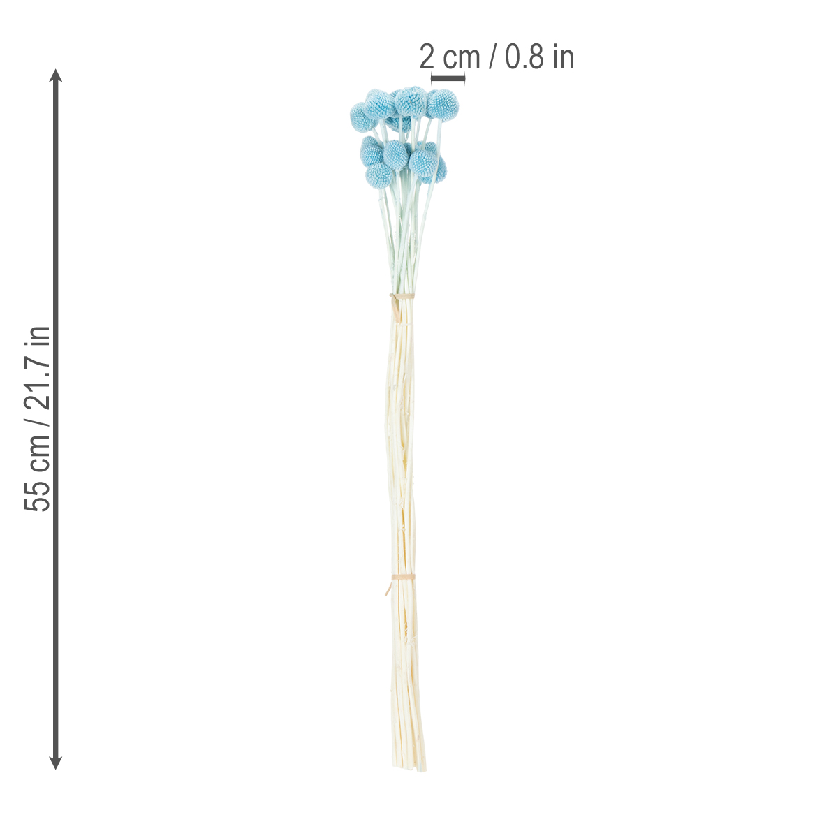 Produktnavn: Craspedia tørrede blomsterdekoration til vase, minimalistisk stil, langvarig sommerdekoration, 55 cm, 20 stk.