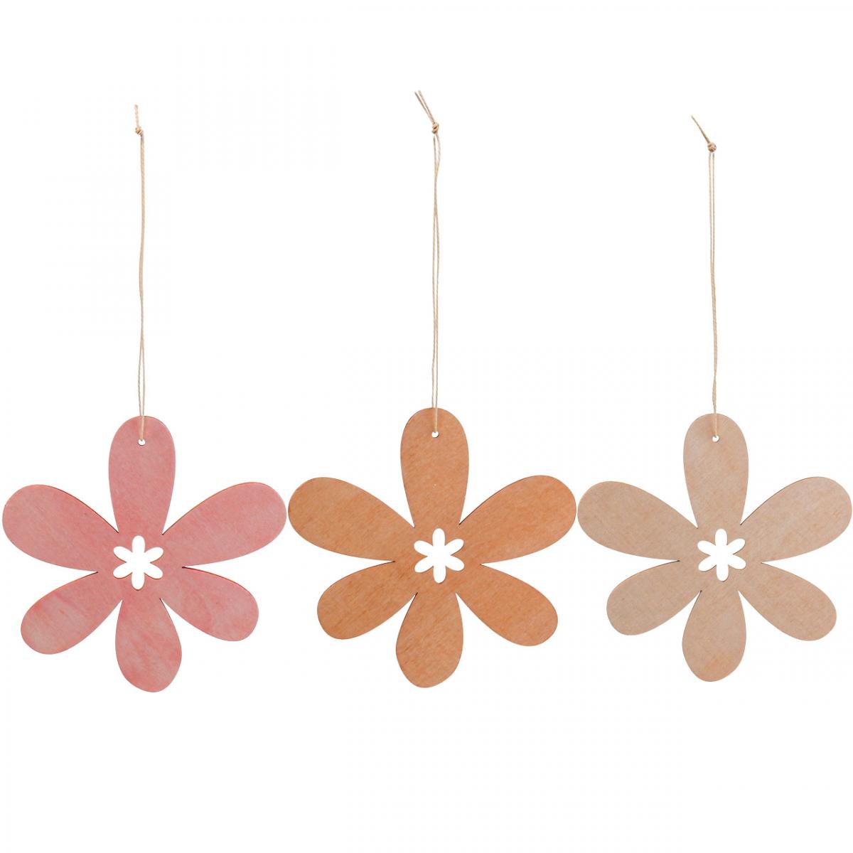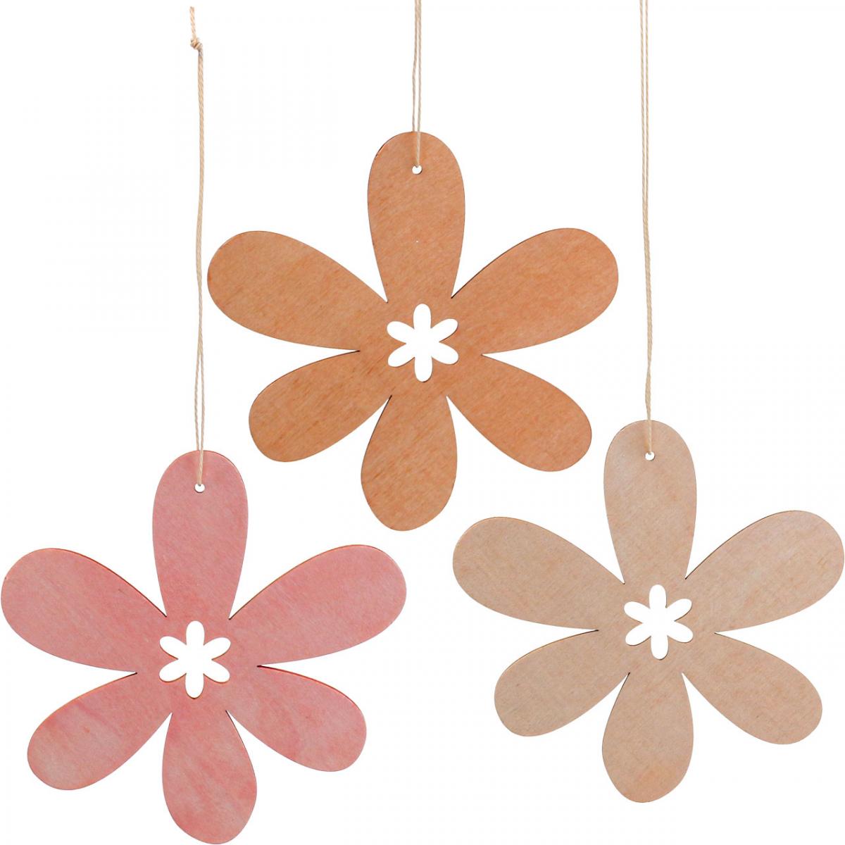 Deco blomst trævedhæng træblomst orange/pink/gul 12 stk.