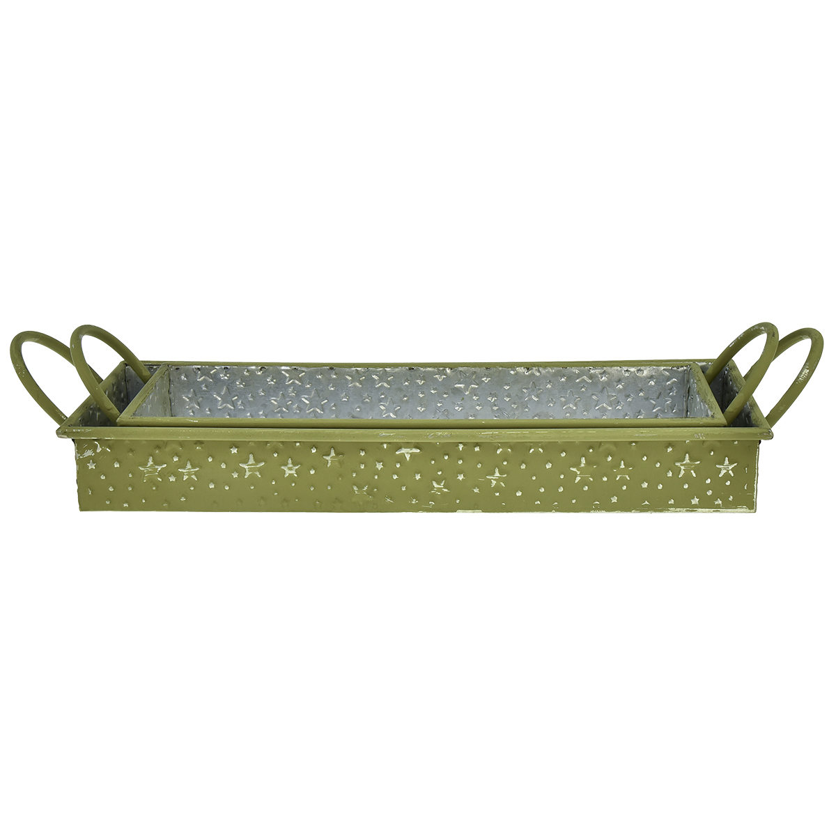 Den dekorative bakke til jul i grøn med stjerner i forskellige størrelser er ikke kun funktionel, men også et visuelt højdepunkt. Den aflange bakke er lavet af metal af høj kvalitet og dekoreret med et stjernemønster, og den er perfekt som base for din feriedekoration. De to størrelser tilbyder en bred vifte af anvendelser, og de robuste håndtag gør omarrangering lettere.
