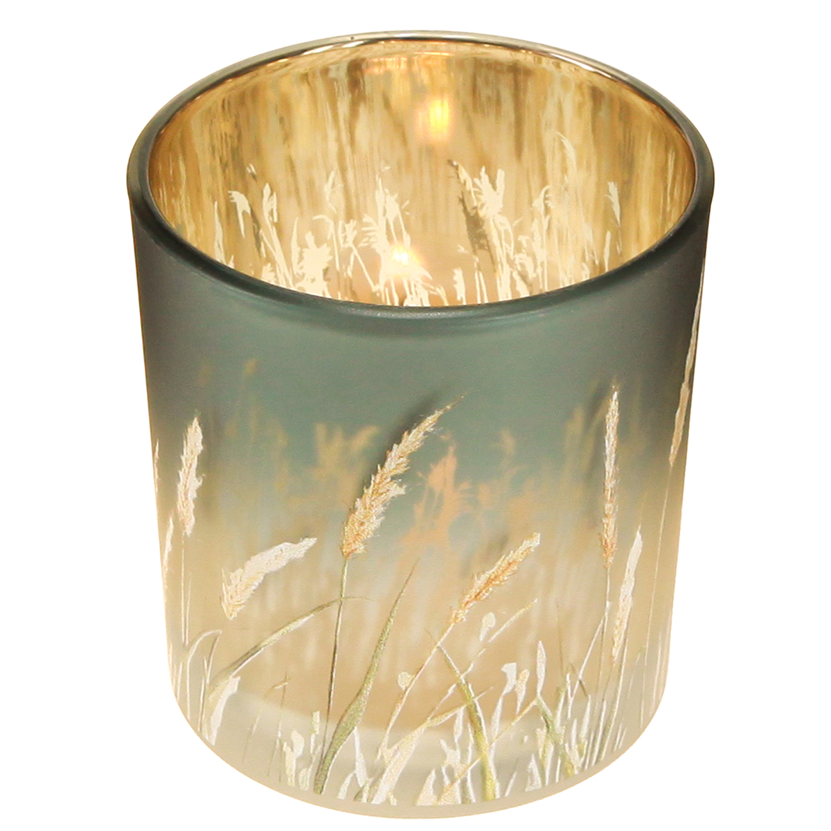 Leder du efter et stilfuldt accessoire til dit hjem? Hvad med et dekorativt stykke, der udstråler harmoni og samtidig skaber smukke lyseffekter? Denne glaslanterne med græsdesign er et sandt blikfang – diskret udført i blåt og guld med et delikat mønster, der minder om græsser, der svajer blidt i en sommerbrise. Forestil dig: den varme glød fra et fyrfadslys indeni afspejler det indviklede design og skaber en hyggelig atmosfære. Uanset om de bruges som en elegant borddekoration til en middag, som blød belysning i vindueskarmen eller som behagelig belysning på terrassen – disse glaslanterner tilføjer et særligt præg til ethvert rum. Perfekt til dem, der ønsker at kombinere romantik med naturlig stil.