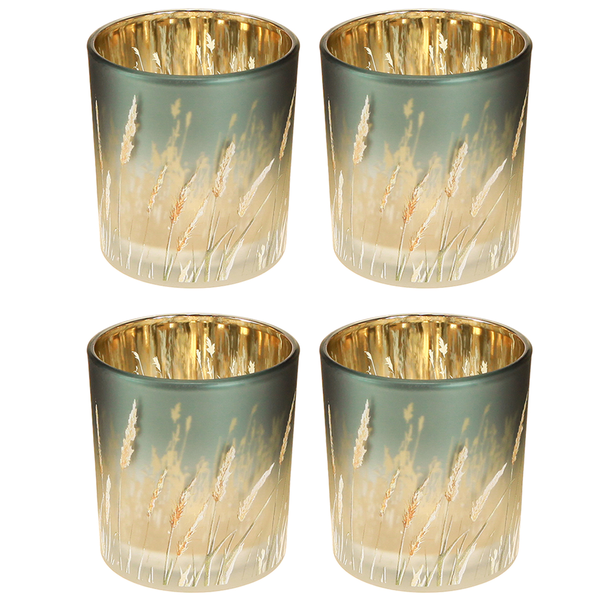Dekorativ glaslanterne med græsdesign til atmosfæriske rumdetaljer, blå, 8 cm, 4 stk.