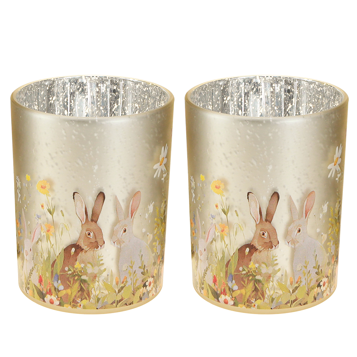 Dekorativ glaslanterne med påskeharemotiv til forårsindretning i hjemmet, 12,5 cm, 2 stk.
