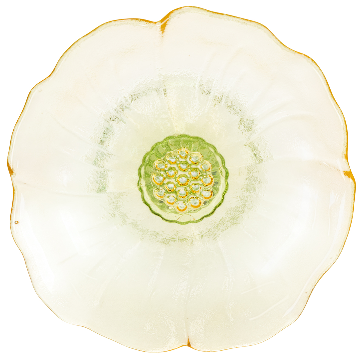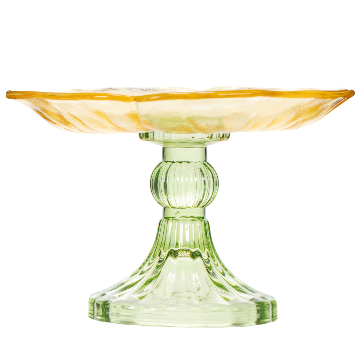 Denne smukke, festlige glastallerken med fod er et sandt blikfang med sit fine blomsterdesign. Den grønne, klare glasbund fremhæver elegant de bløde gule blomster og giver tallerkenen en let og luftig fornemmelse. Brug den til stilfuldt at præsentere delikat indpakkede slik, små kager eller bagværk. Takket være sit tidløse design komplementerer den både moderne og rustikke omgivelser. Ideel til særlige lejligheder såsom bryllupper, påske eller fødselsdage – eller blot som et højdepunkt på din daglige borddækning.