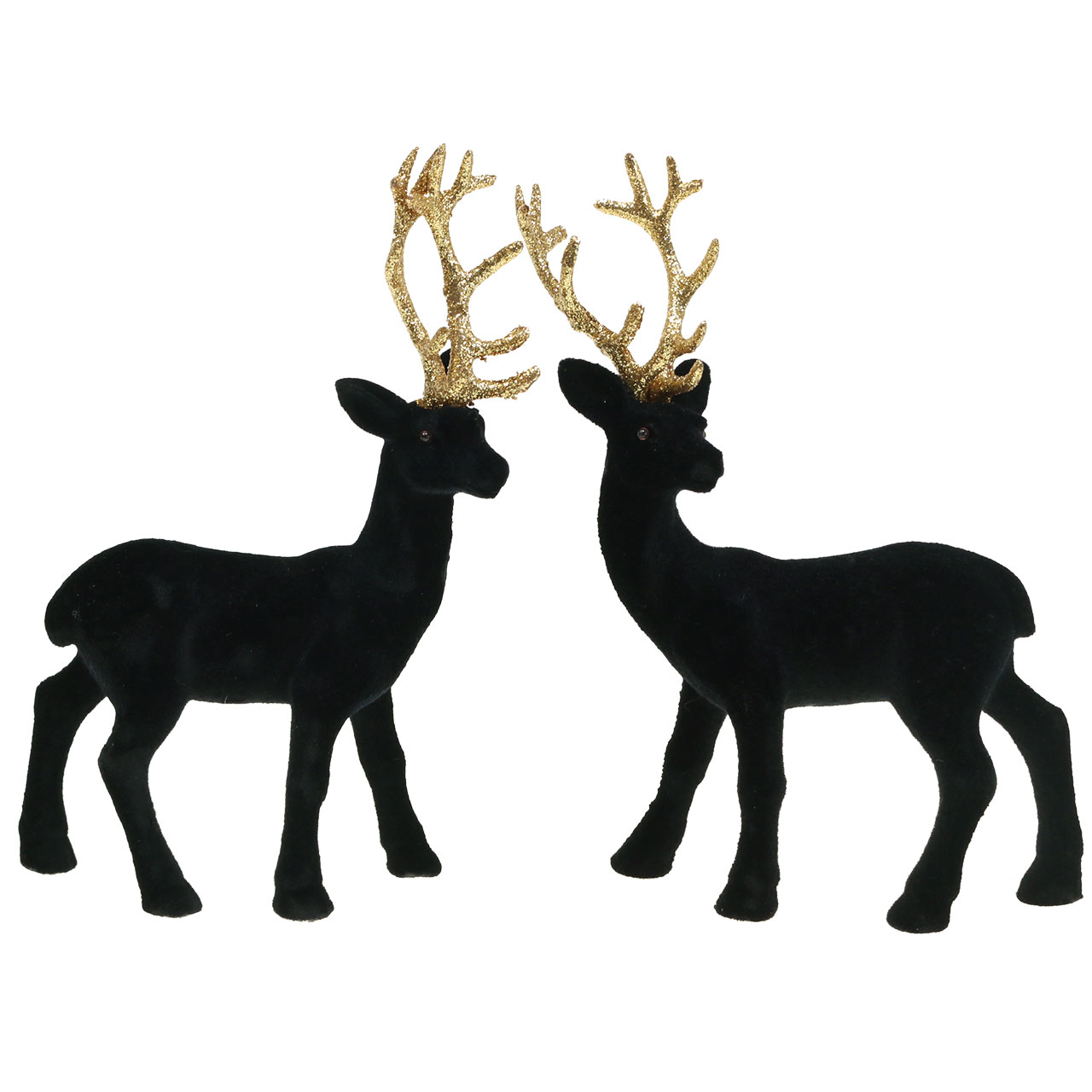 Dekorativ hjorte flokket sort, guld 20cm 2 stk