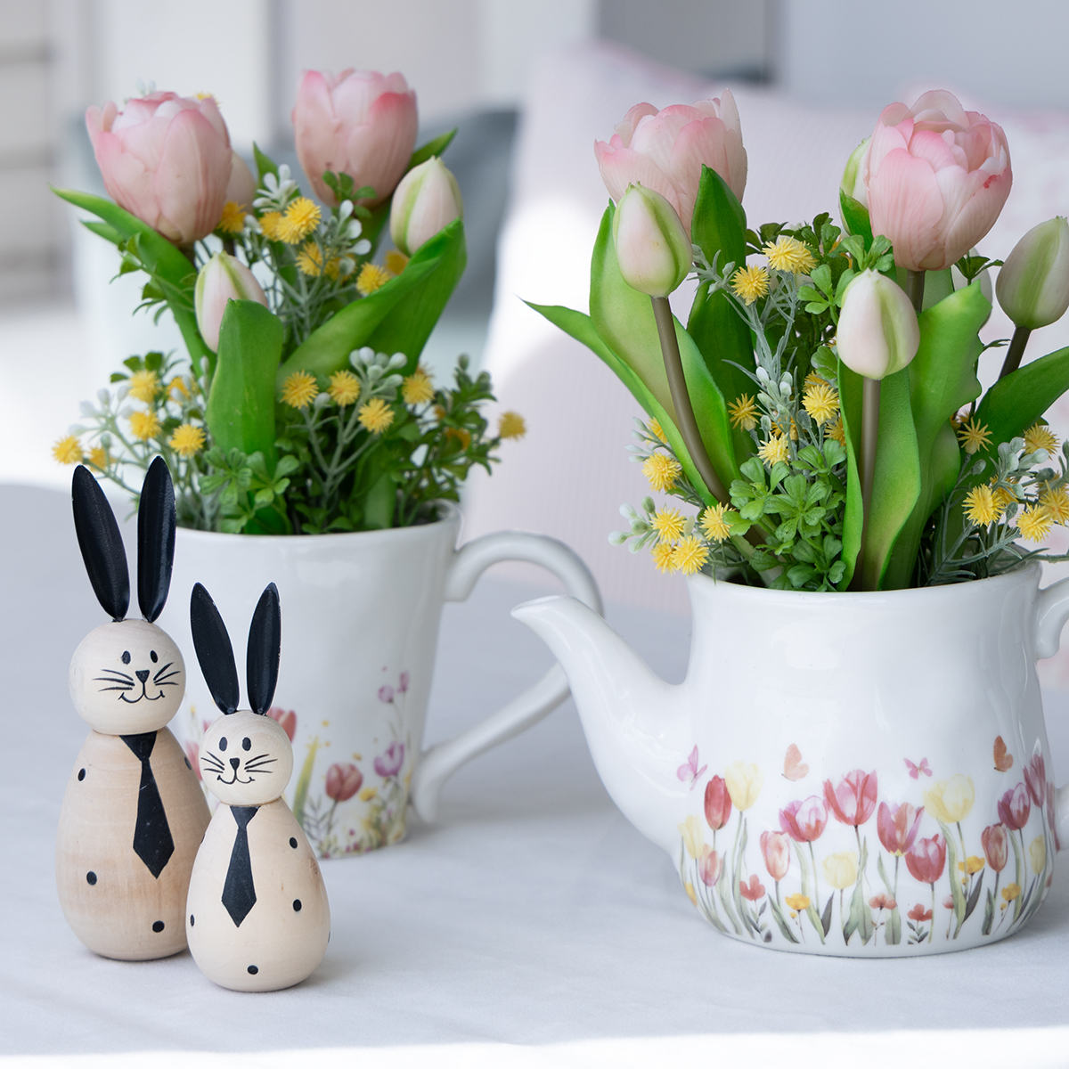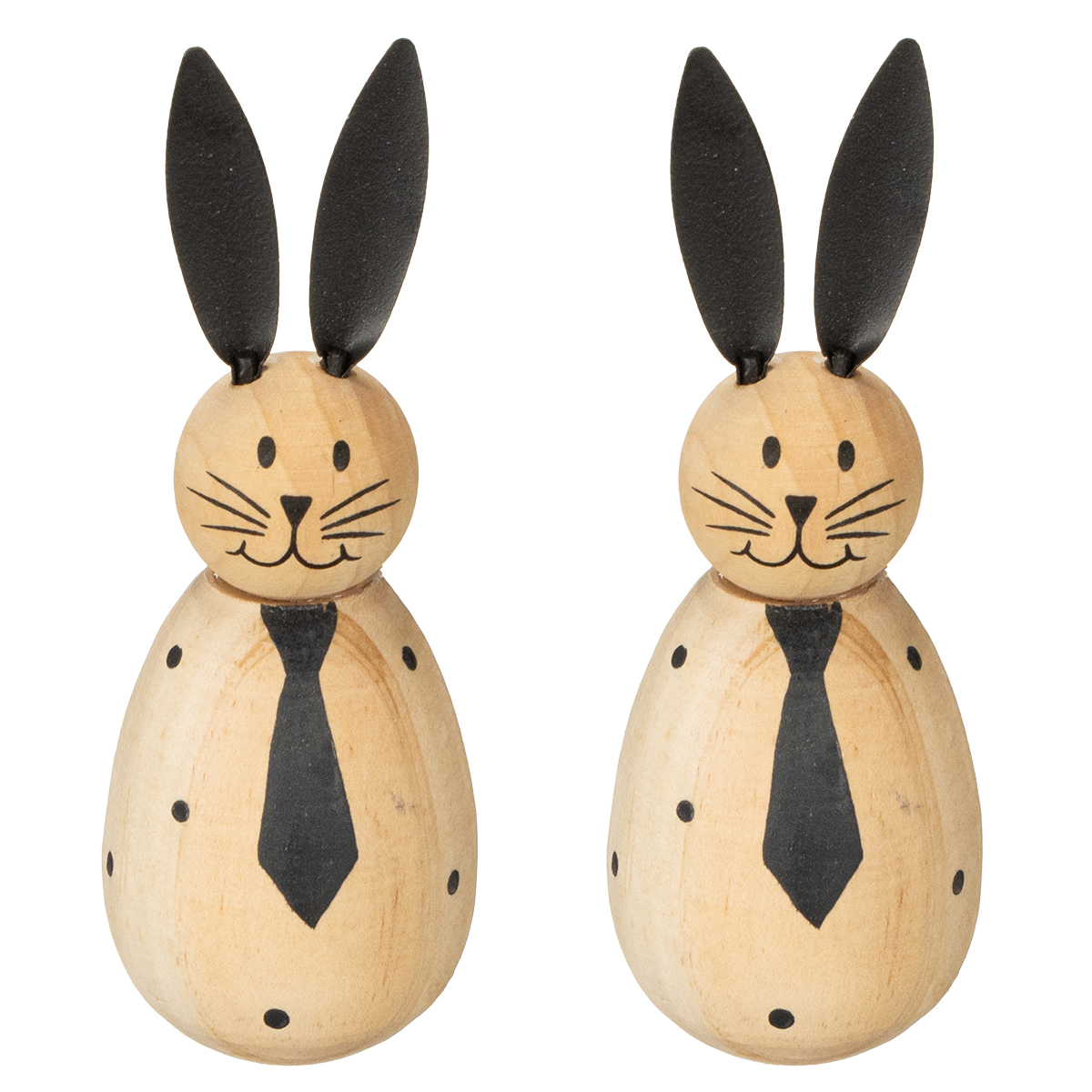 Enhver, der elsker moderne landstil eller et skandinavisk minimalistisk look, vil blive fortryllet af disse små trækaniner. De kombineres smukt med andre naturlige materialer som filt, bomuld eller keramik og passer til næsten enhver farvepalet – fra sarte pastelfarver til livlige forårsfarver. De skaber endda et flot visuelt accent, når de kombineres med friske blomster eller grønne planter. Prøv det: simpelthen vidunderligt som bordpynt i spisestuen eller som en charmerende detalje til påskefrokosten!