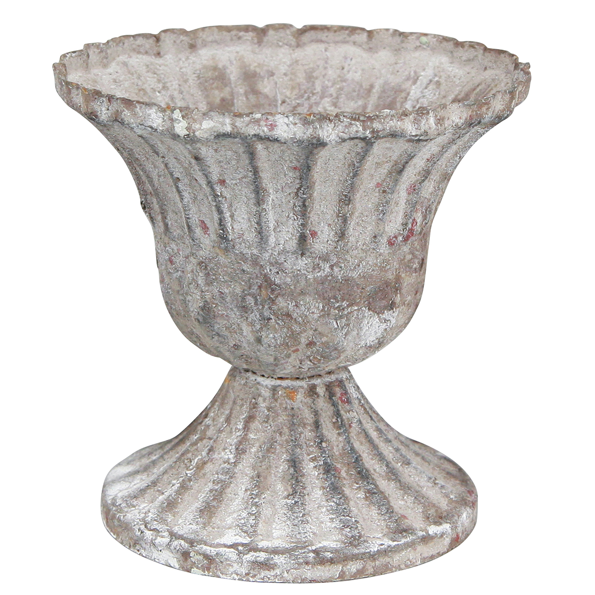 Denne rustikke dekorative kop i grå, hvid og rustbrun imiterer perfekt det klassiske design af antikke kar og er derfor ideel til en vintage forårsdekoration. Basen og skålen på den rustikke bæger er kendetegnet ved flydende former og blomsterelementer. Kreationen er ikke kun et rent kar, men også et kunstværk.