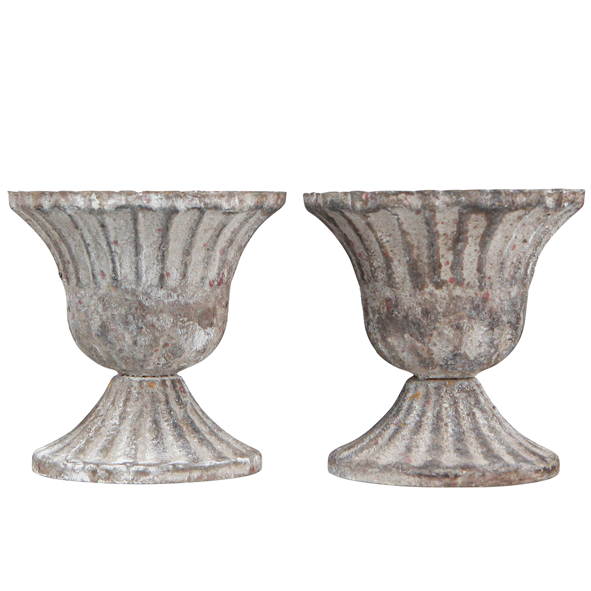 Dekorativ Kop Rustik Antik Kalk Grå Hvid Ø8cm H8,5cm 2stk