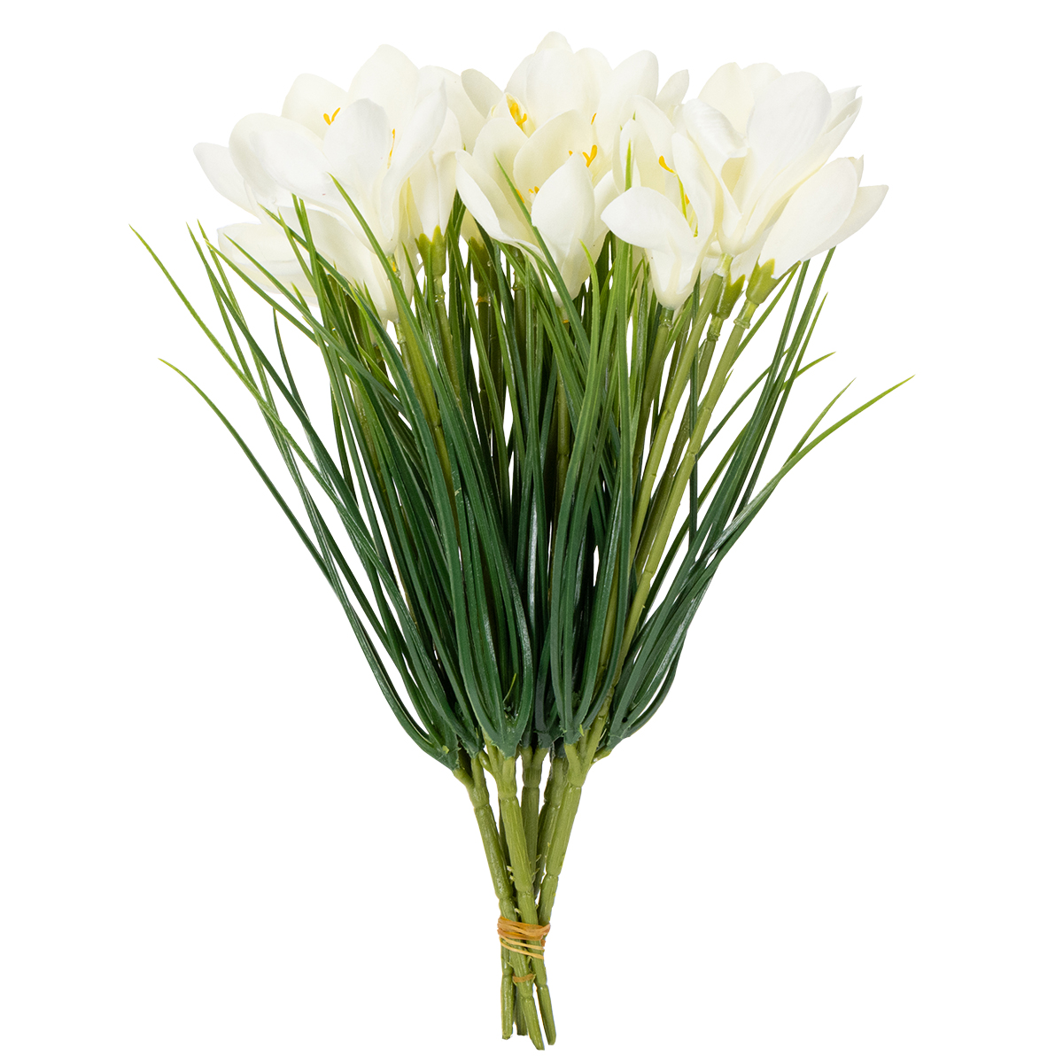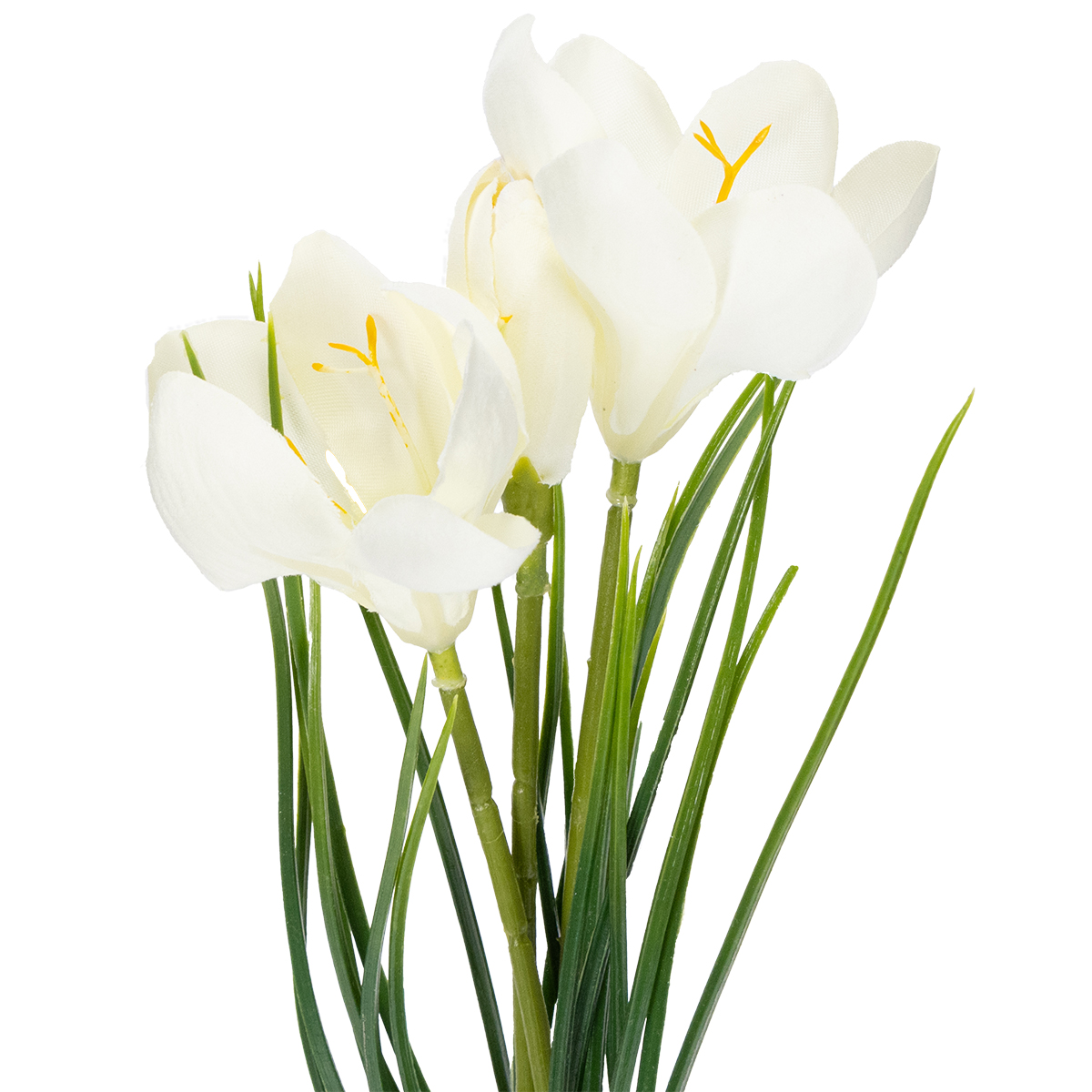 Foråret er i luften – hvad med at bringe den friske, lette atmosfære ind i dit hjem lige nu? Med vores kunstige krokus i strålende hvid kan du skabe tidløse forårsdekorationer, der garanteret holder. Uanset om det er i vindueskarmen i stuen, som midtpunkt ved et forårsbryllup eller som et højdepunkt på kontoret – denne fortryllende kunstige krokus bringer et strejf af naturlig elegance til ethvert rum. De seks kærligt fremstillede blomsterstængler ser utroligt realistiske ud takket være det detaljerede håndværk i silkestof. Læg dertil de livlige grønne blade: en perfekt kombination, der giver ethvert rum en indbydende forårsstemning.