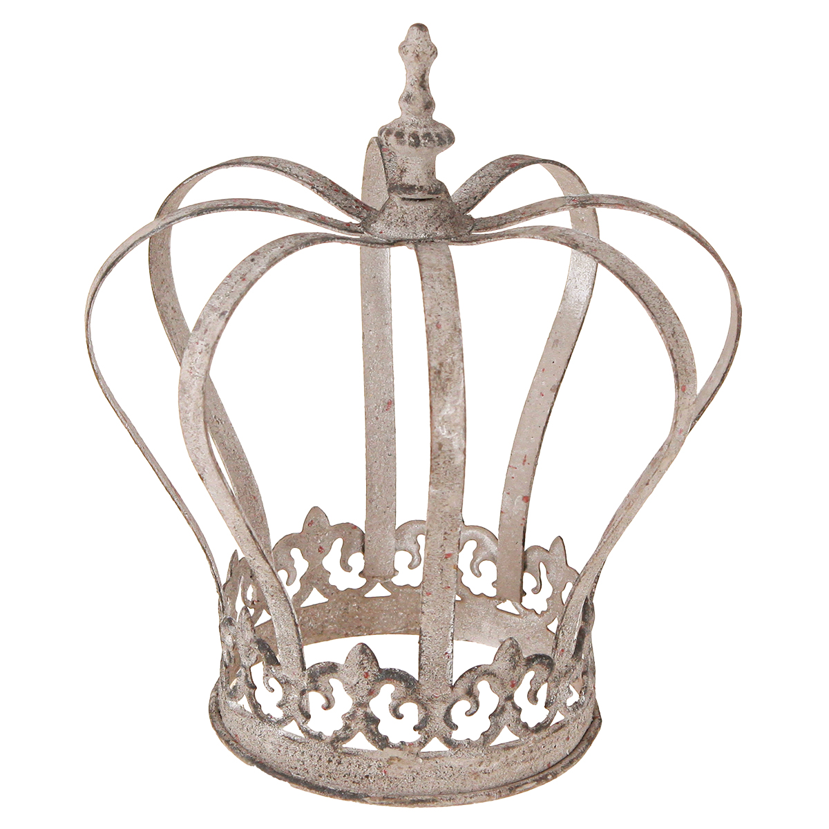 Med denne dekorative krone er der ingen grænser for dine kreative ideer. Metalkronen er vasket grå og dekoreret stedvis med rustfarve, som giver den et strejf af vintage og passer perfekt til den trendy shabby chic stil. De let buede stænger ender i en fleur-de-lys, tidligere de franske kongers våbenskjold.