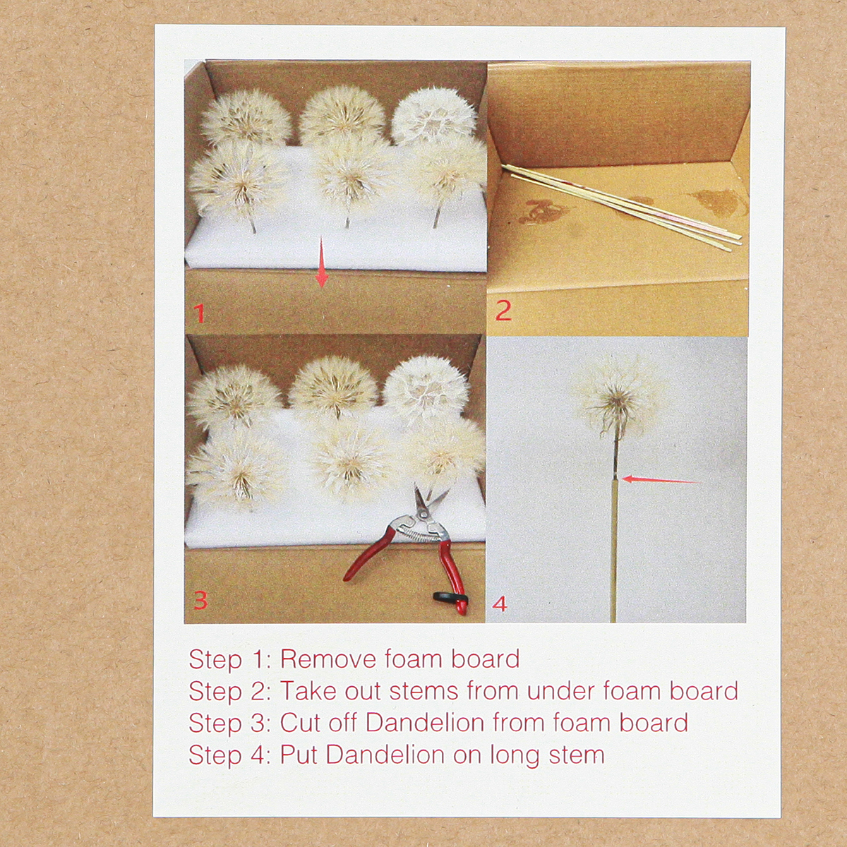 - Kombiner mælkebøtterne med vores tørrede blomster til et individuelt arrangement.