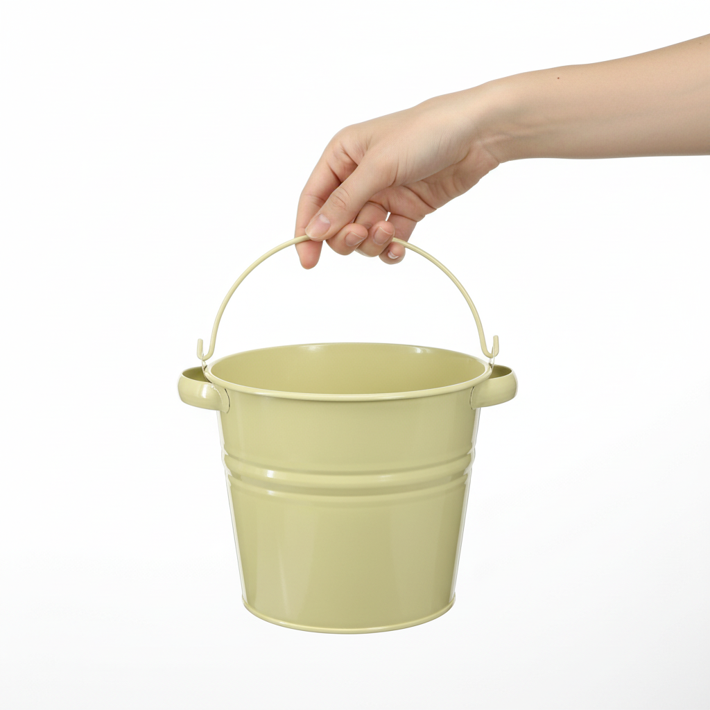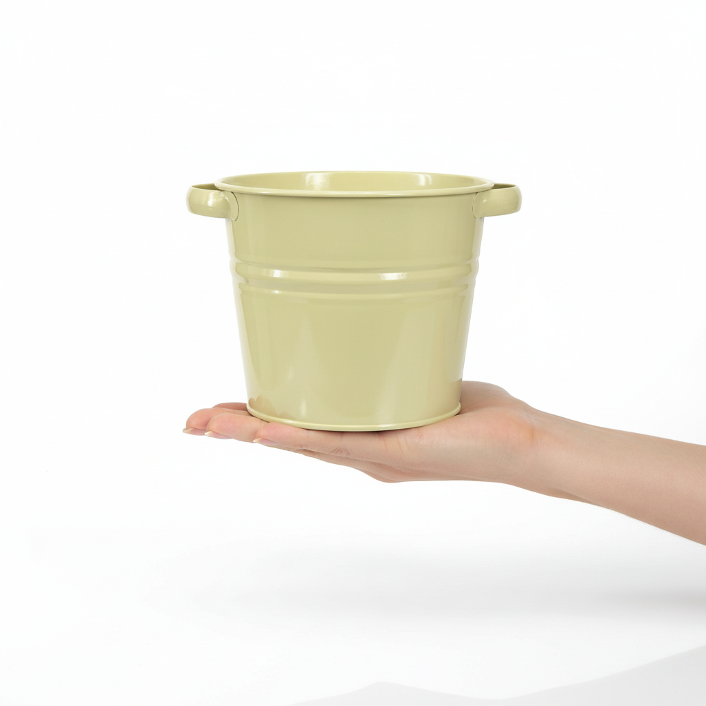 Denne dekorative metalkrukke i en frisk grøn-gul tilføjer moderne accenter til dit hjem. Med sine imponerende mål på cirka 31×26×21,5 cm og de praktiske sidehåndtag bringer denne urtepotte både funktionalitet og stil til indendørs og udendørs områder.