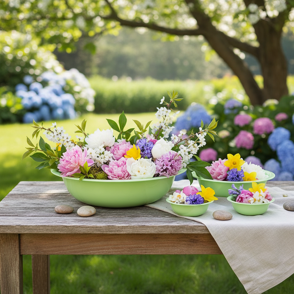 Kombinationen af det skinnende emaljelook og det lysegrønne er særligt smukt. Lad hvide kyllinger og farverige påskeæg blive i denne skål i en mørkegrøn påskekurv. Skålen er også ideel som base til påskekranse eller tørrede blomster, måske med en dråbe forårsduft.