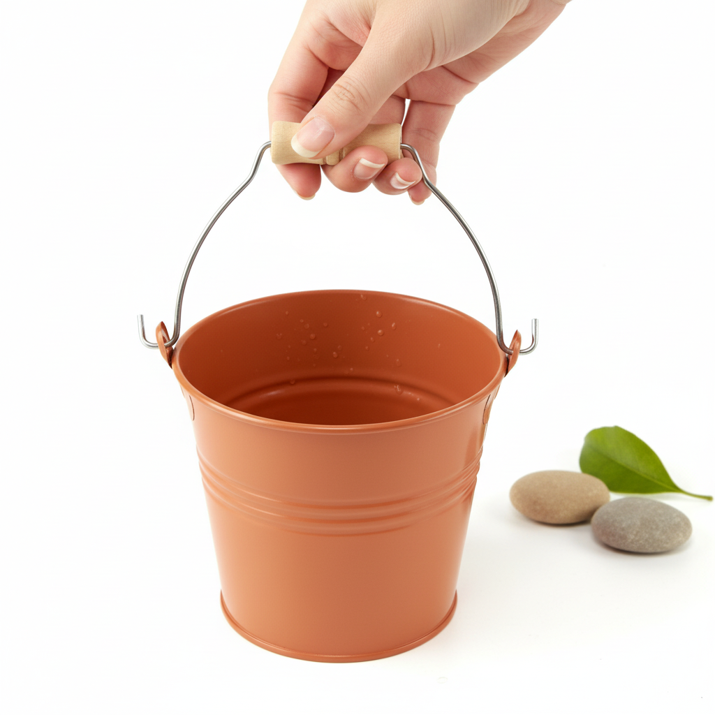 Udover sin klassiske form har spanden et bevægeligt håndtag, hvortil der som et højdepunkt er fastgjort et ubehandlet træhåndtag. Dette giver den dekorative plantekasse et smukt vintage-look, der passer harmonisk overalt.