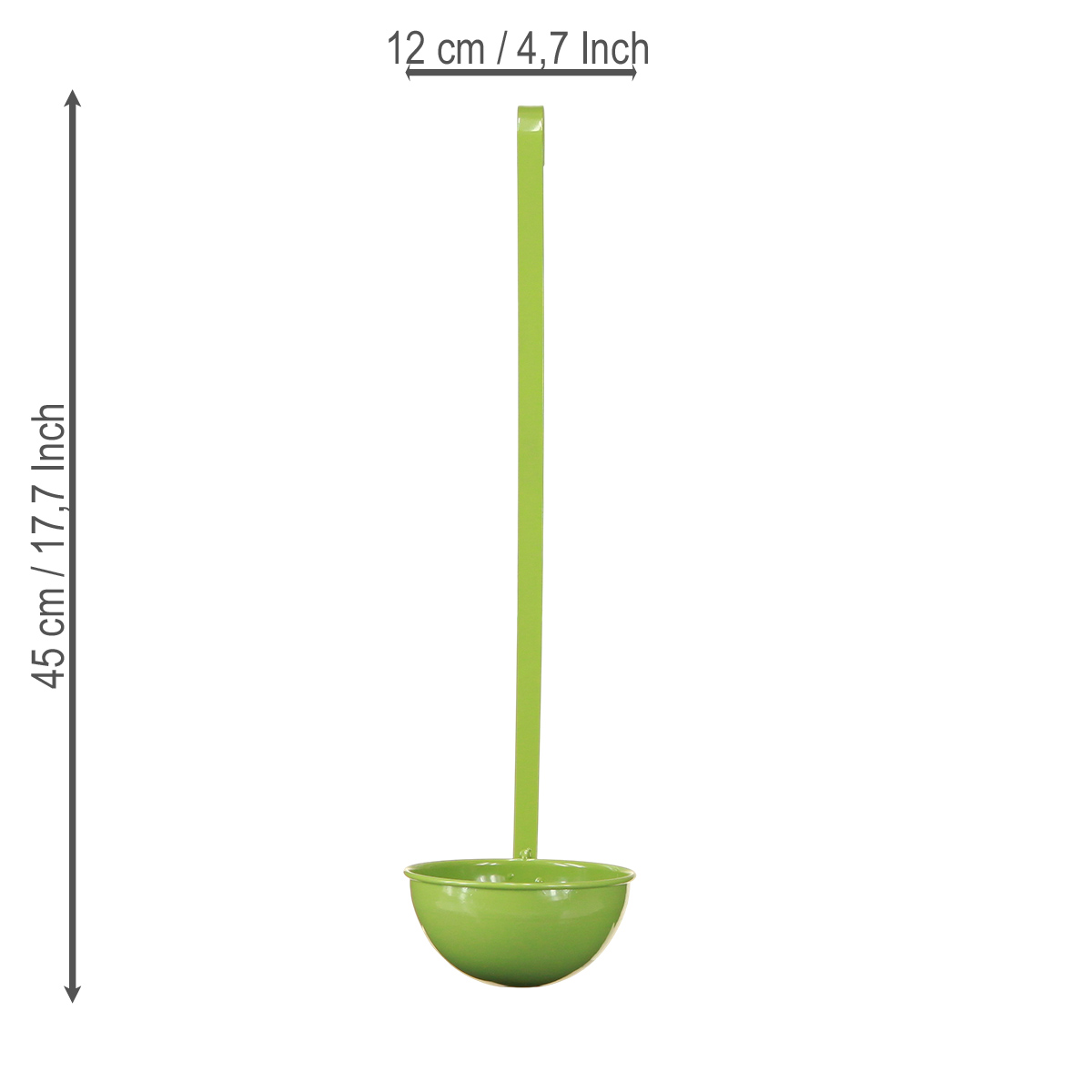 Hvad gør en hængende dekorativ øse så speciel? Denne charmerende grønne suppeøse tilføjer et særligt præg til ethvert rum. Uanset om det er i køkkenet, stuen eller endda haven – den vil garanteret fange alles opmærksomhed. Med en længde på 45 cm er den et iøjnefaldende, men stilfuldt tilbehør, der kombinerer klassisk funktionalitet med moderne elegance. Opdag, hvordan en simpel metaløse kan blive et sandt blikfang! Leder du efter noget rustikt til at lyse din hverdag op? Denne grønne dekorative øse scorer point med sit originale design og praktiske anvendelser: hvad enten det er som krydderurteholder i køkkenet, dekorativ urtepotteholder eller rustik vægdekoration i stuen. Den livlige grønne farve kombinerer friskhed og naturlighed. Perfekt til alle, der elsker noget særligt!