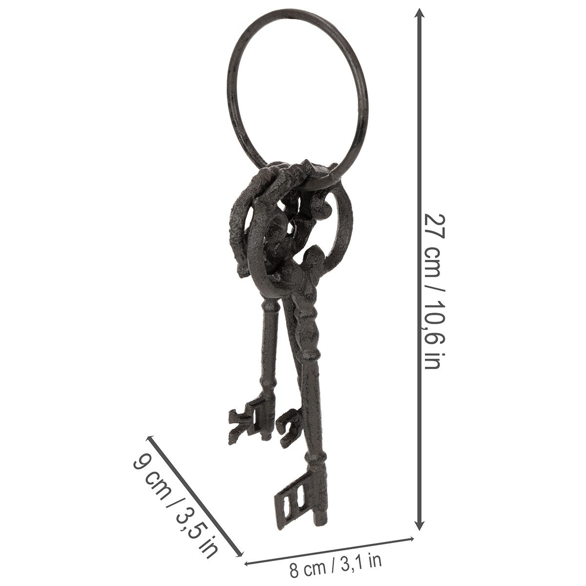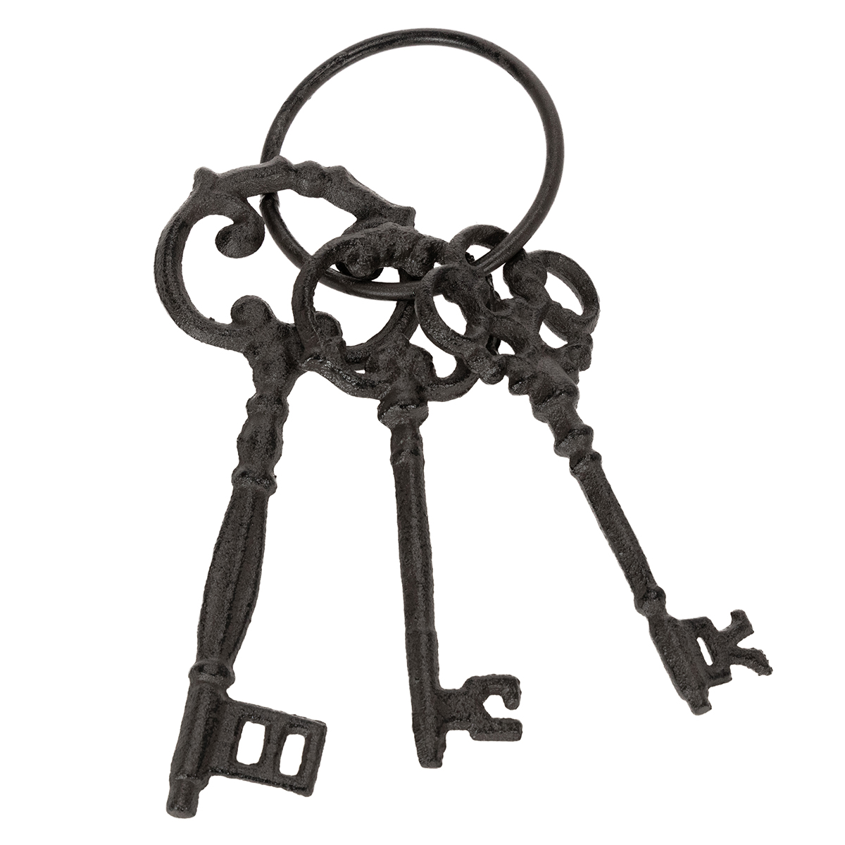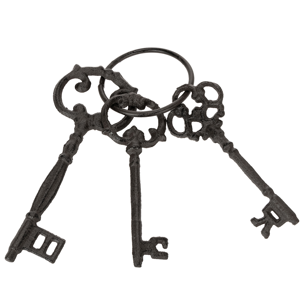 - Design: tre forskellige nøgler i former, der minder om antikke modeller, fastgjort til en ring