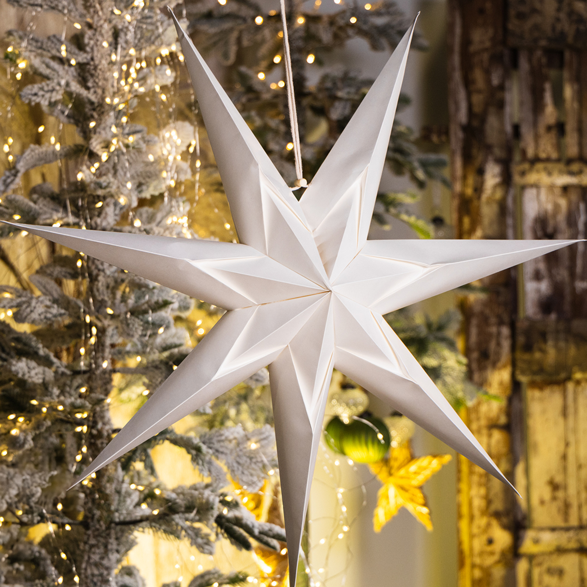 Papirstjerne i cremehvid: et festligt blikfang til ophængning og belysning