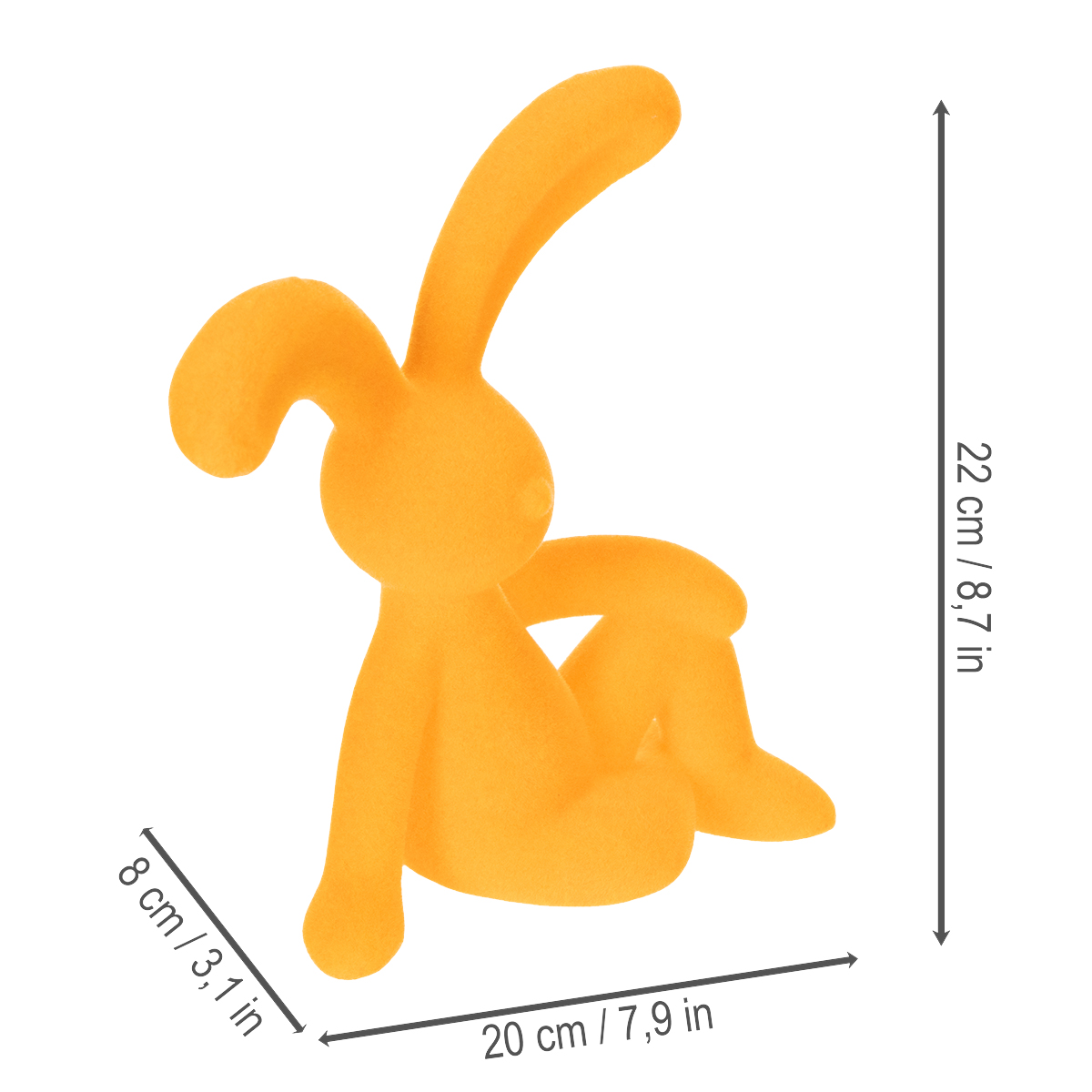 Denne yndige gule dekorative kanin, lavet af plastik, kombinerer moderne æstetik med traditionel påskeglæde. Takket være dens flockede overflade glimrer figuren elegant i en levende solgul farve og har en behagelig følelse. Med en højde på 22 centimeter og en bredde på 8 centimeter er den kompakt nok til mindre dekorative arrangementer, men den fungerer også som en flot accent i større påskedekorationer. Den klare gule farve bringer et strejf af farve til ethvert rum og skaber et harmonisk helhedsindtryk, især i kombination med pastelfarvede accessories. Uanset om den er i et skandinavisk, moderne eller farverigt interiør, passer denne kanin perfekt ind i rummet.