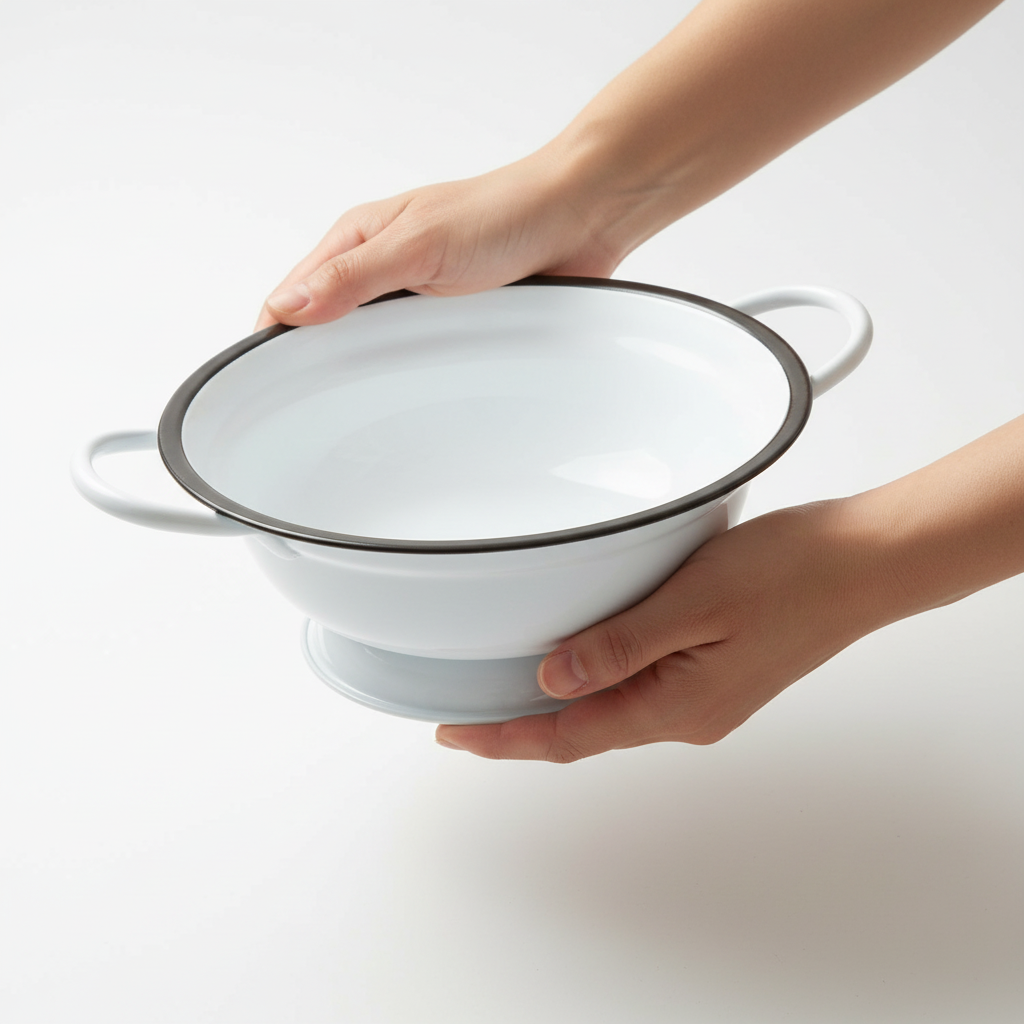 Hvid metalskål i moderne emaljelook til stilfuld dekoration