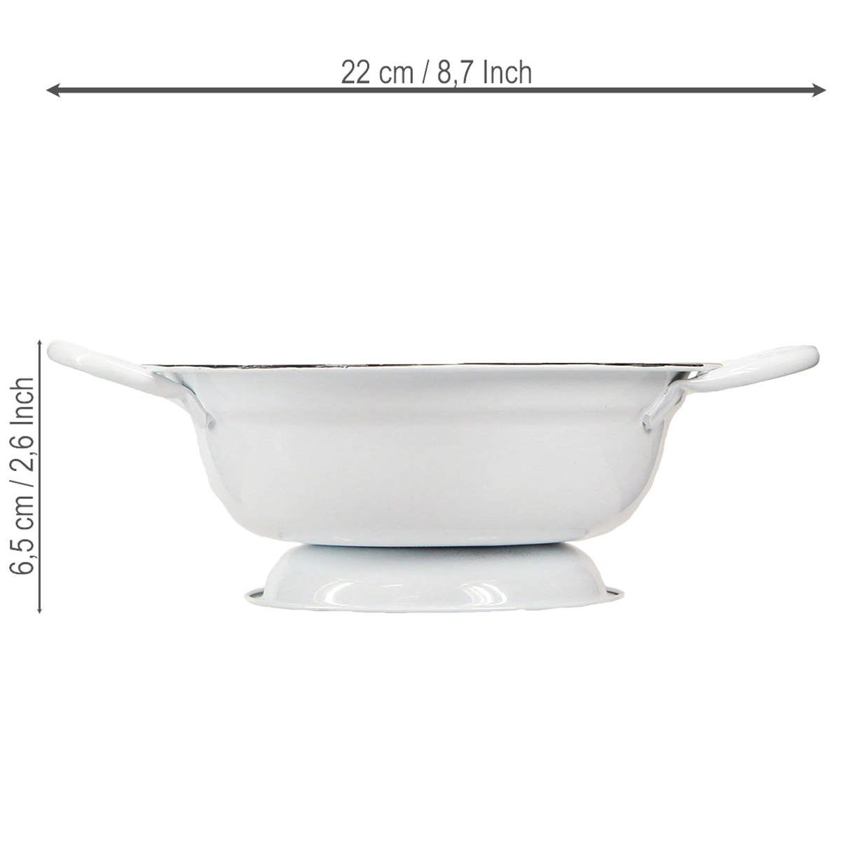 - Materiale: Metal i hvidt emaljelook med sort kant