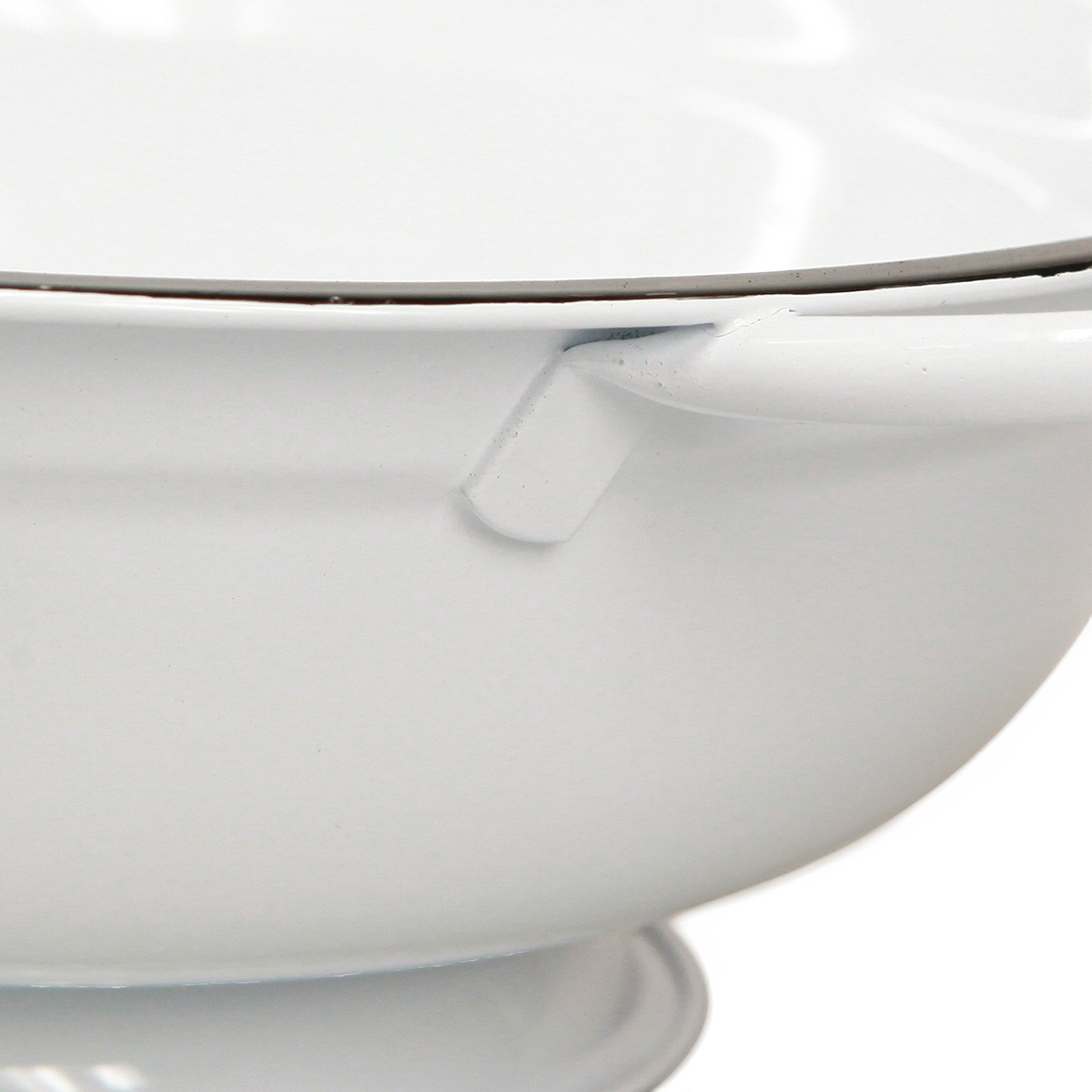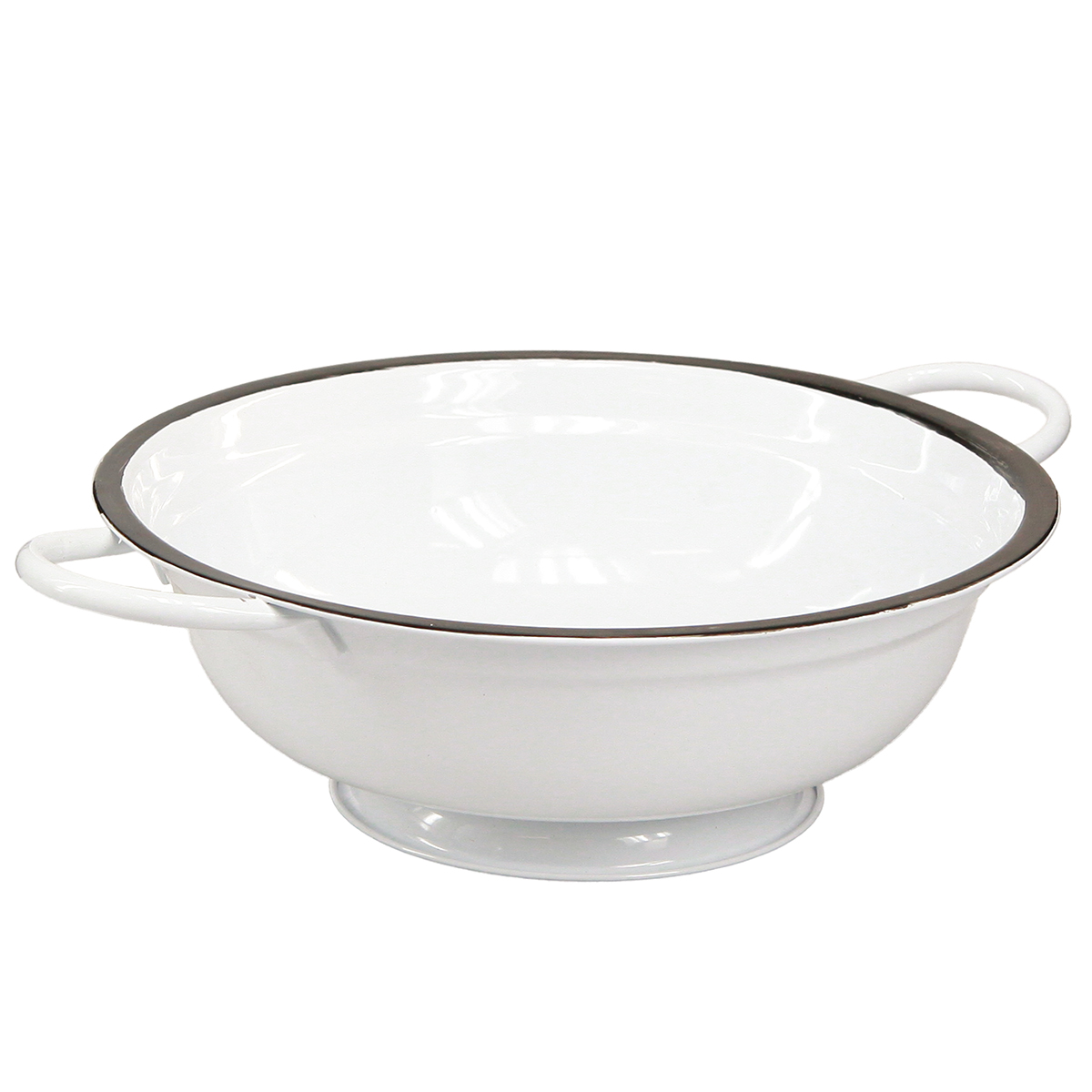 Takket være deres neutrale farve i hvid med sort kant, passer metalskålene harmonisk ind i en bred vifte af indretningsstile, hvad enten det er den trendy shabby chic, en klassisk stemning eller et moderne hjem. Skålene er ikke kun en stilfuld tilføjelse til dit hjem, men også et populært valg for professionelle dekoratører og eventplanlæggere, der leder efter autentiske og smart iscenesatte dekorationsløsninger. Kombiner blot skålene med de matchende kopper i samme design, som fås separat fra Floristik24, og skab en sammenhængende dekorativ verden i dit køkken eller på dit spisebord.