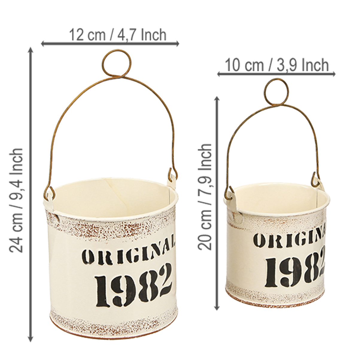 Dekorativ spand med hank “Original 1982” Cremefarvet Ø12/10cm 2×2-delt sæt