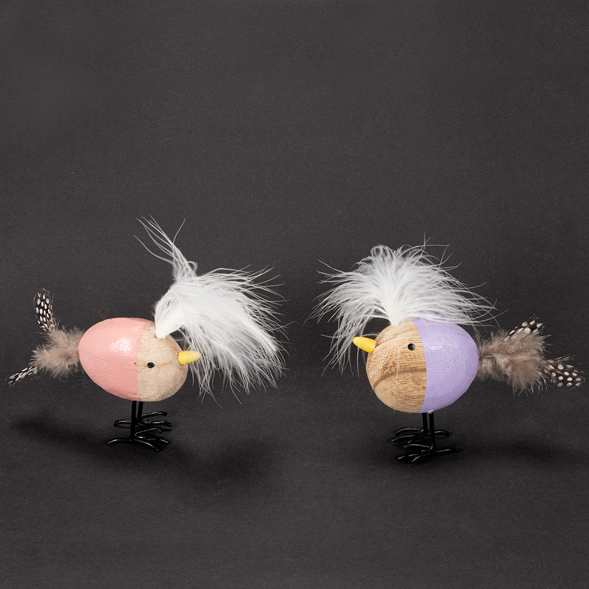 Hver af vores dekorative fugle er fremstillet af ægte træ med omhyggelig sans for detaljer. De fine, ægte fuglefjer gør hvert stykke unikt og giver det en naturlig charme. Med en længde på 10 cm, en bredde på 3 cm og en højde på 9 cm er disse dekorative træfugle perfekte til et dækket bord eller, om foråret, til en vindueskarm. Kombinationen af lilla og pink skaber en blød og munter atmosfære – ideel til at fremme en indbydende og glædelig atmosfære.