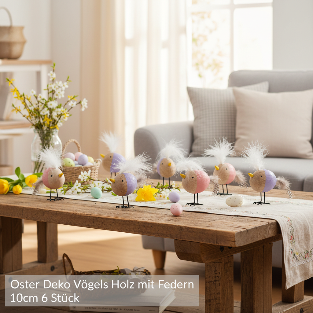 Kombinationen af naturligt træ, fint håndværk og livlige farver gør dette dekorative sæt helt specielt. Disse små fugle er ikke kun nemme at placere, men også utroligt alsidige. Pakket som et sæt med seks, er de ideelle til at bringe dine dekorationsideer til live. Opdag de mange muligheder: en farverig detalje på dit påskebord, det perfekte supplement til dine forårsdekorationer eller en betænksom gave til dine kære.