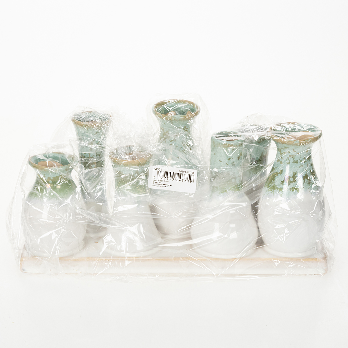 Hvornår har du sidst forbedret dit hjem med gennemtænkte detaljer, der tilføjer et særligt præg? Vores dekorative keramiske vasesæt på en bakke af høj kvalitet er det perfekte tilbehør til hjemmet! Disse smukke minivaser i bløde nuancer af grøn og hvid kombinerer elegance med tidløs enkelhed – perfekte til et harmonisk hjem. Med en længde på 26 cm og et rustikt look passer disse vaser perfekt ind i ethvert rum, uanset om det er spisebordet, vindueskarmen eller entréen.