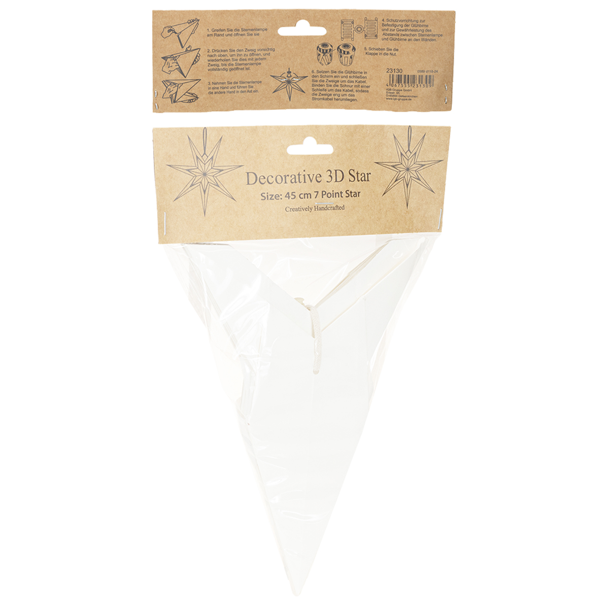 Disse dekorative stjerner er lavet af robust og holdbart papir og udstråler naturlighed og minimalisme. Den matchende bomuldssnor med integreret snorstopper er både praktisk og visuelt tiltalende. Dette veldesignede ophængningssystem gør det nemt at placere stjernerne og sikrer perfekt justering.