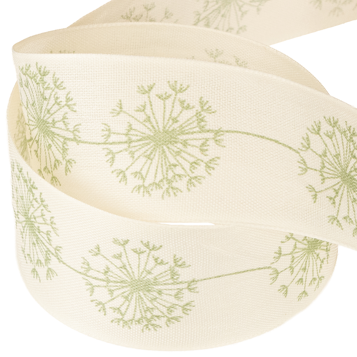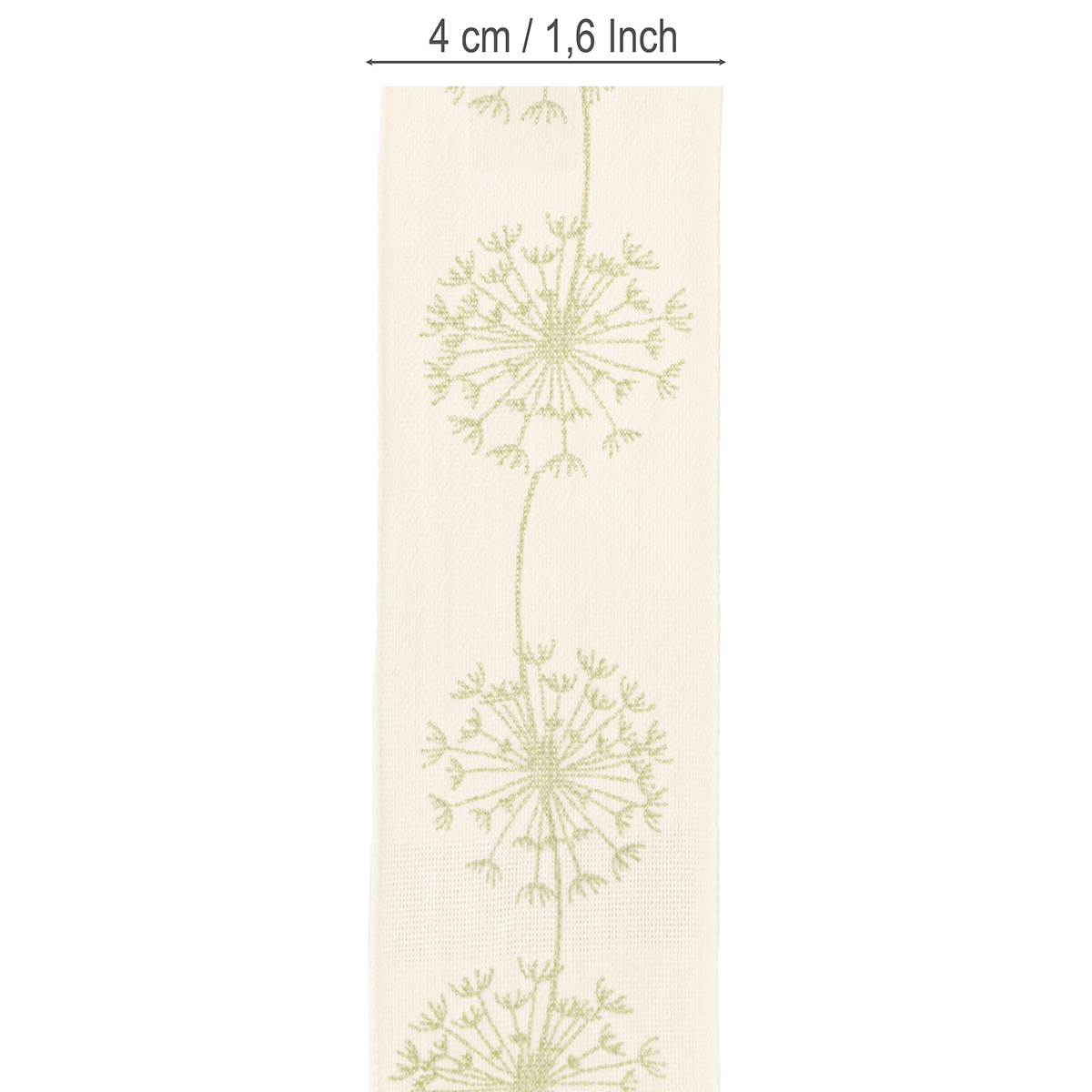 Bredt dekorativt bånd med mælkebøtter i cremefarvet – forårselegance til enhver dekoration