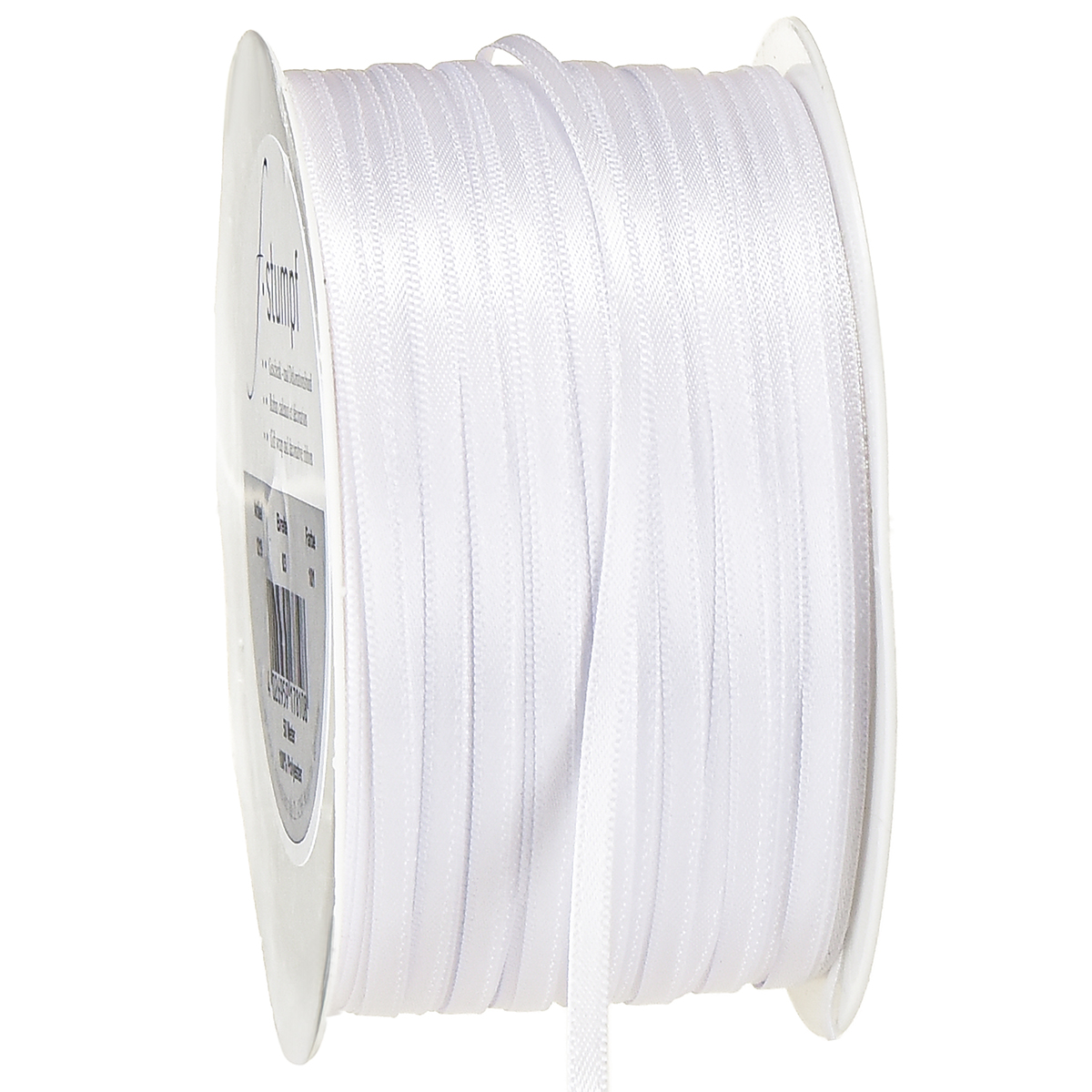 Dekorativt bånd satinbånd hvidt dobbelt satinbånd 3mm 50m