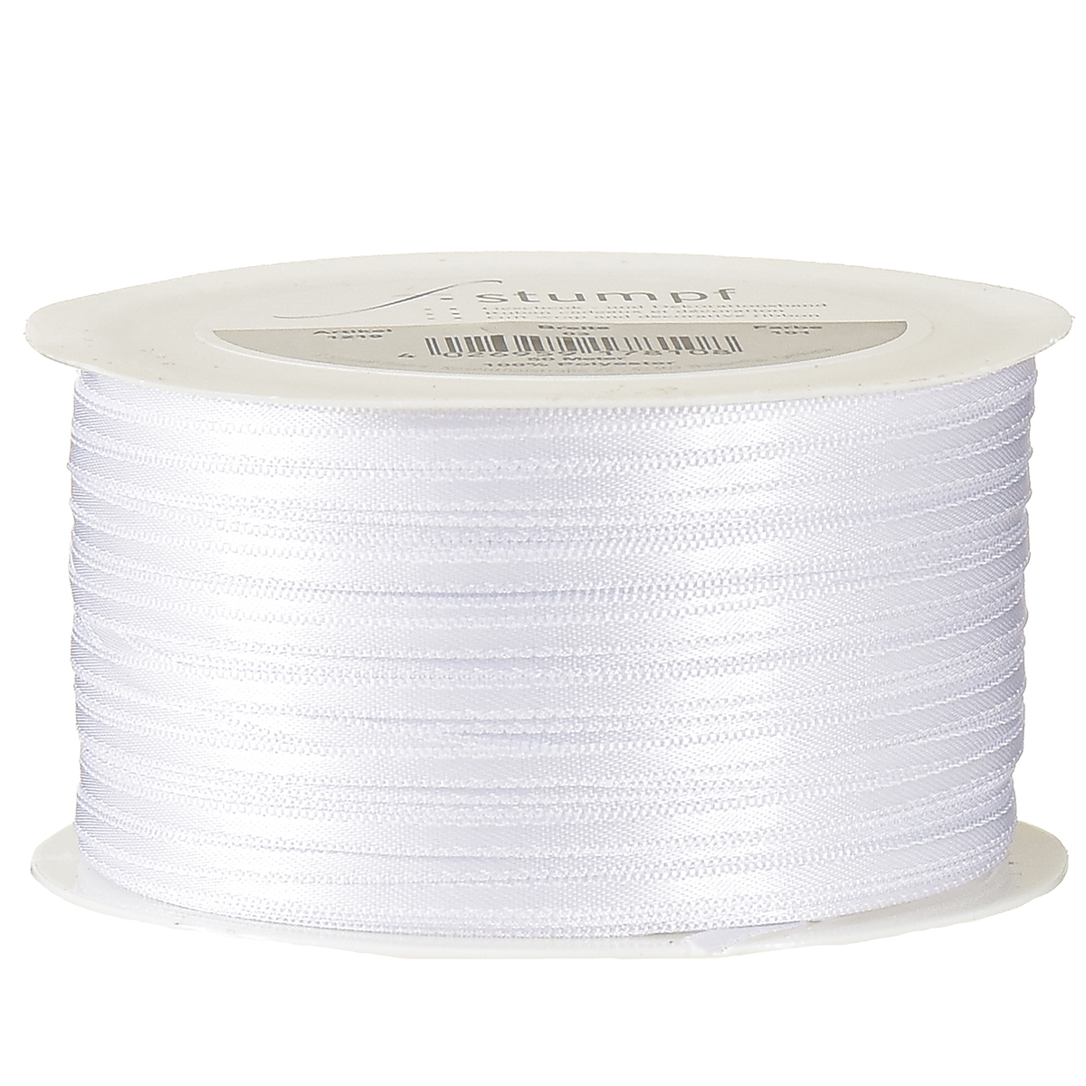 Det dekorative bånd af høj kvalitet er 50 m langt og 3 mm bredt. Det er lavet af dobbelt satin og er ideelt til hobbyarbejde, især fordi dets vævede kanter forhindrer det i at flosse, når det klippes.