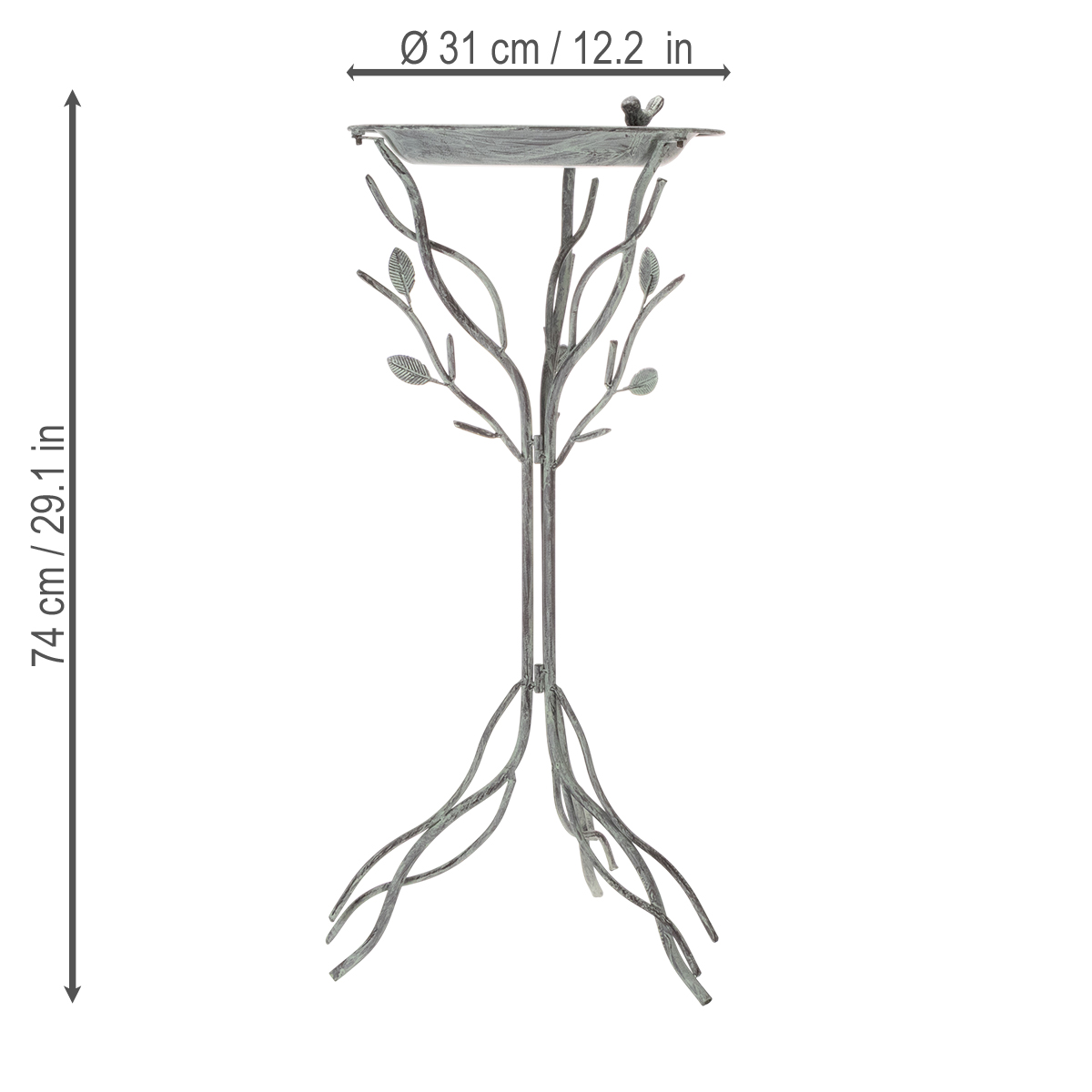 Dette fuglebad imponerer ikke kun med sin funktionalitet, men også med sit delikate design. Designet, der minder om forgrenede grene, passer harmonisk ind i enhver have, uanset om det er moderne, rustik eller romantisk landstil. Med en højde på 74 cm hviler fuglebadet sikkert på sin kunstfærdigt udformede metalbase. Dens grå farve understreger dets tidløse elegance og giver mulighed for alsidige kombinationer – uanset om det er med blomstrende planter i levende farver eller diskrete toner. Det rustbestandige materiale sikrer, at du vil nyde dette smukke møbel i mange år fremover.