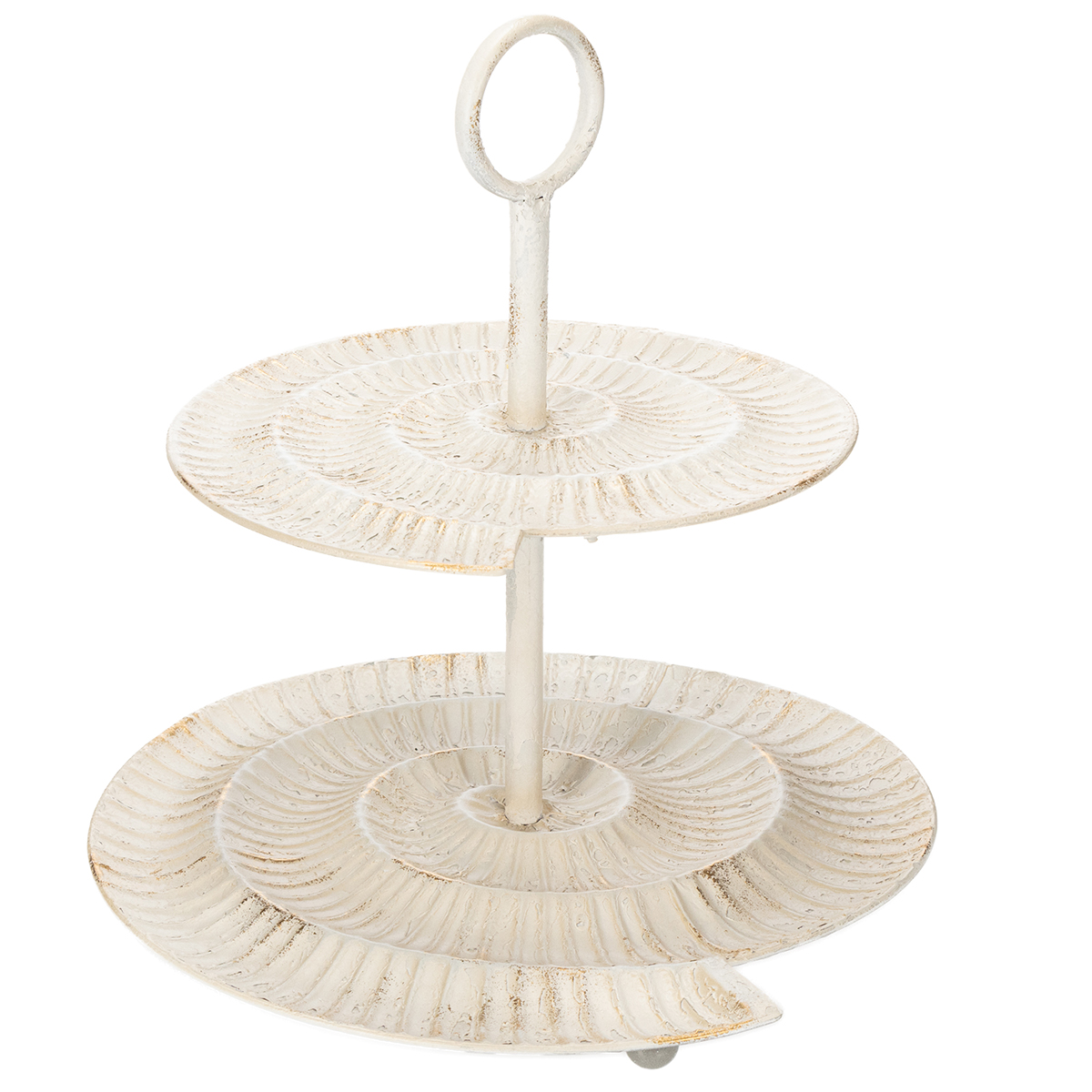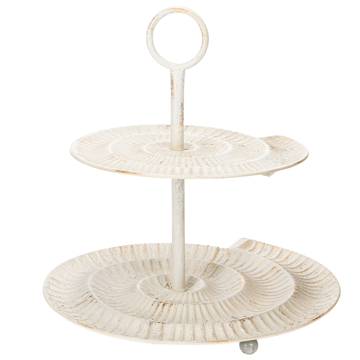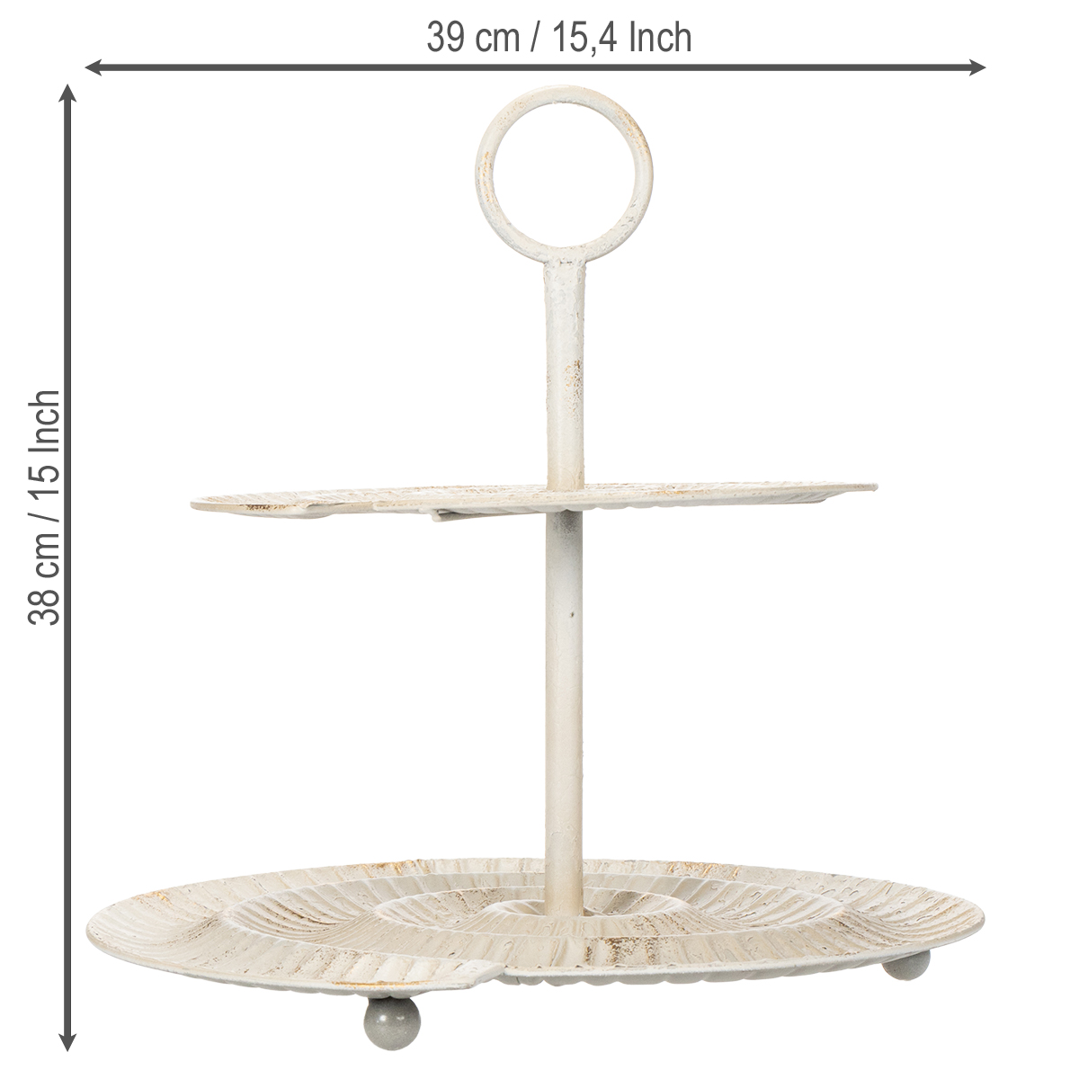 Uanset om det er til en afslappet kaffesammenkomst, en festlig familiefest eller blot til hverdagsbrug – den rette præsentation af desserter, kager eller små delikatesser gør en stor forskel. Med dette dessertfad i metal i charmerende vintage-stil bringer du ikke kun orden, men også elegance til dit bord. Dette fod i to niveauer imponerer med sit detaljerede design og hvide farve, der passer smukt ind i shabby chic-stilen. Et sandt højdepunkt i stuen eller køkkenet!