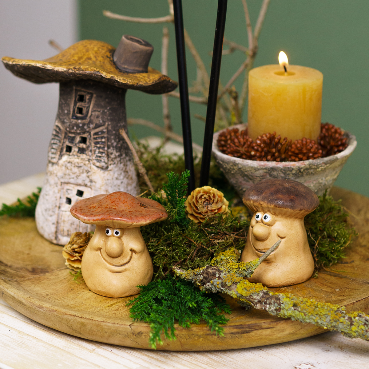 Vores efterårsdekorationssæt kombinerer alt, hvad du behøver til stemningsfuld efterårsdekoration. Dette søde pindsvin lavet af slyngplanter vil være et blikfang i rustikke og hyggelige rum – perfekt til en landlig stil. Det suppleres af miniaturesvampe i varm brun, beige og rustrød, samt legende blomsterpinde, praktisk jutesnor, realistiske røde efterårsblade som kunstige planter og et rustfarvet velkomstskilt.