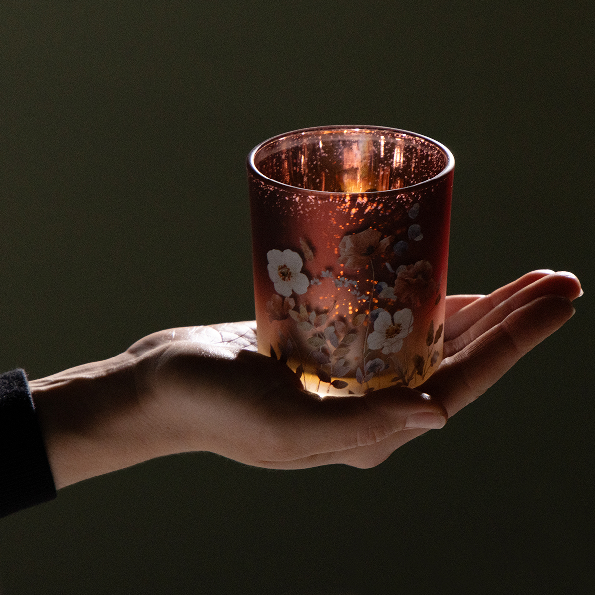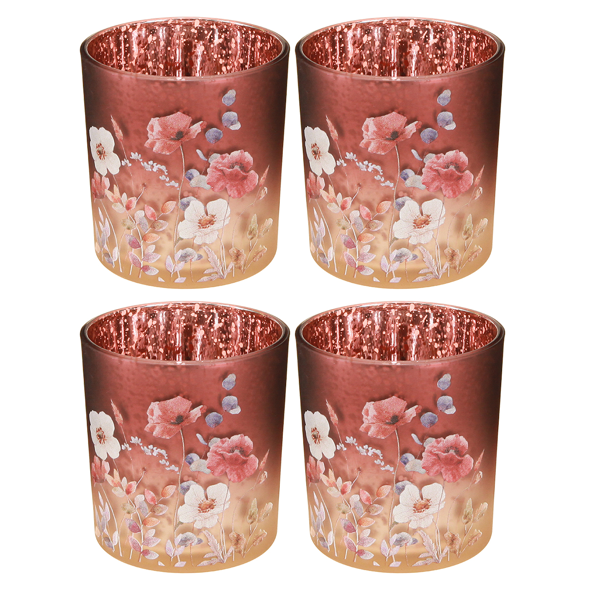 Elegant lysestage med blomstermotiver til stemningsfuld rumindretning, 8 cm, 4 stk.