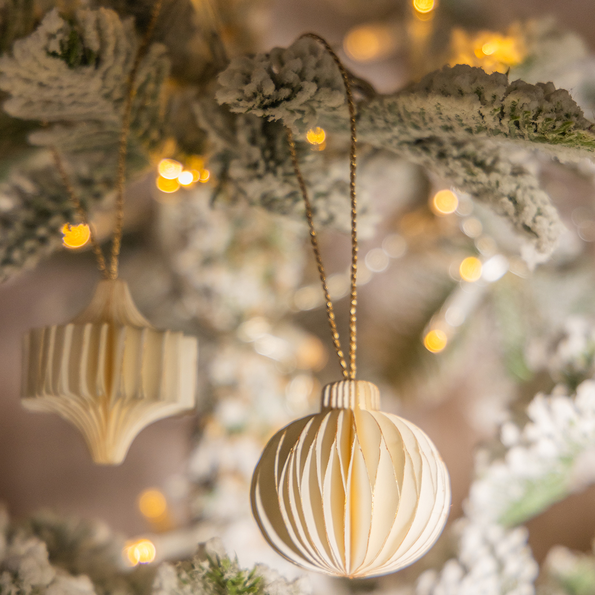 Julepynt lavet af papir i hvid og guld – skandinavisk stil og elegance
