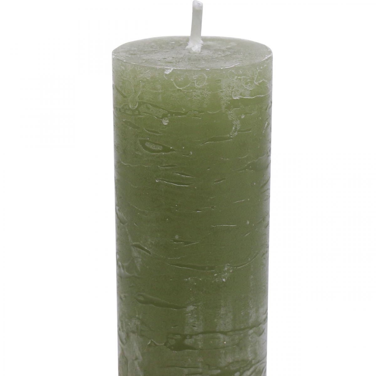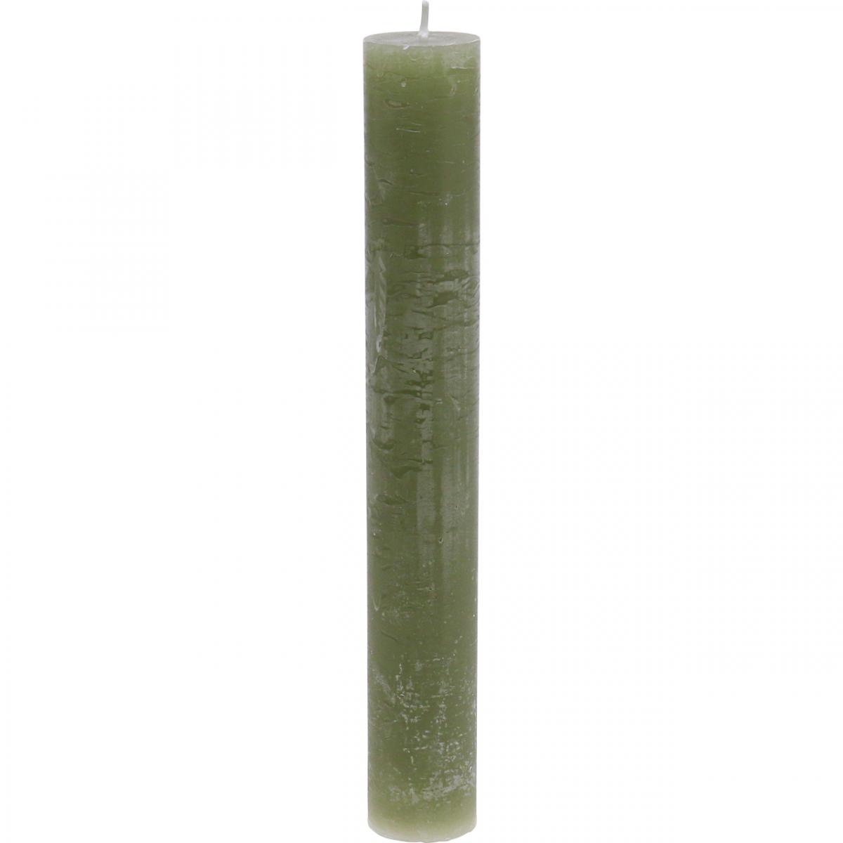 Ensfarvede lys olivengrønne pindelys 34×240mm 4 stk